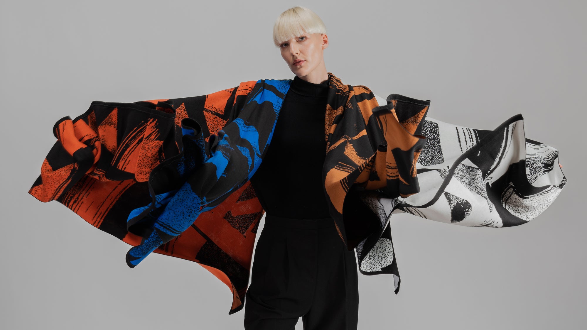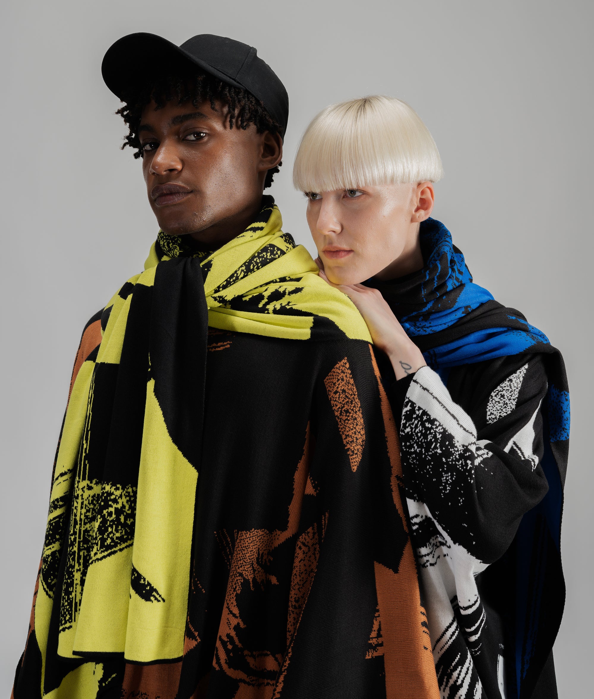 As peças da série Gesto foram criadas para o inverno curto de um país tropical como o Brasil. São todas produzidas em tricô com fio leve e estampa em jacquard dupla face. Elas aquecem sem pesar, preservam a liberdade dos movimentos e enchem de cor os looks de inverno.