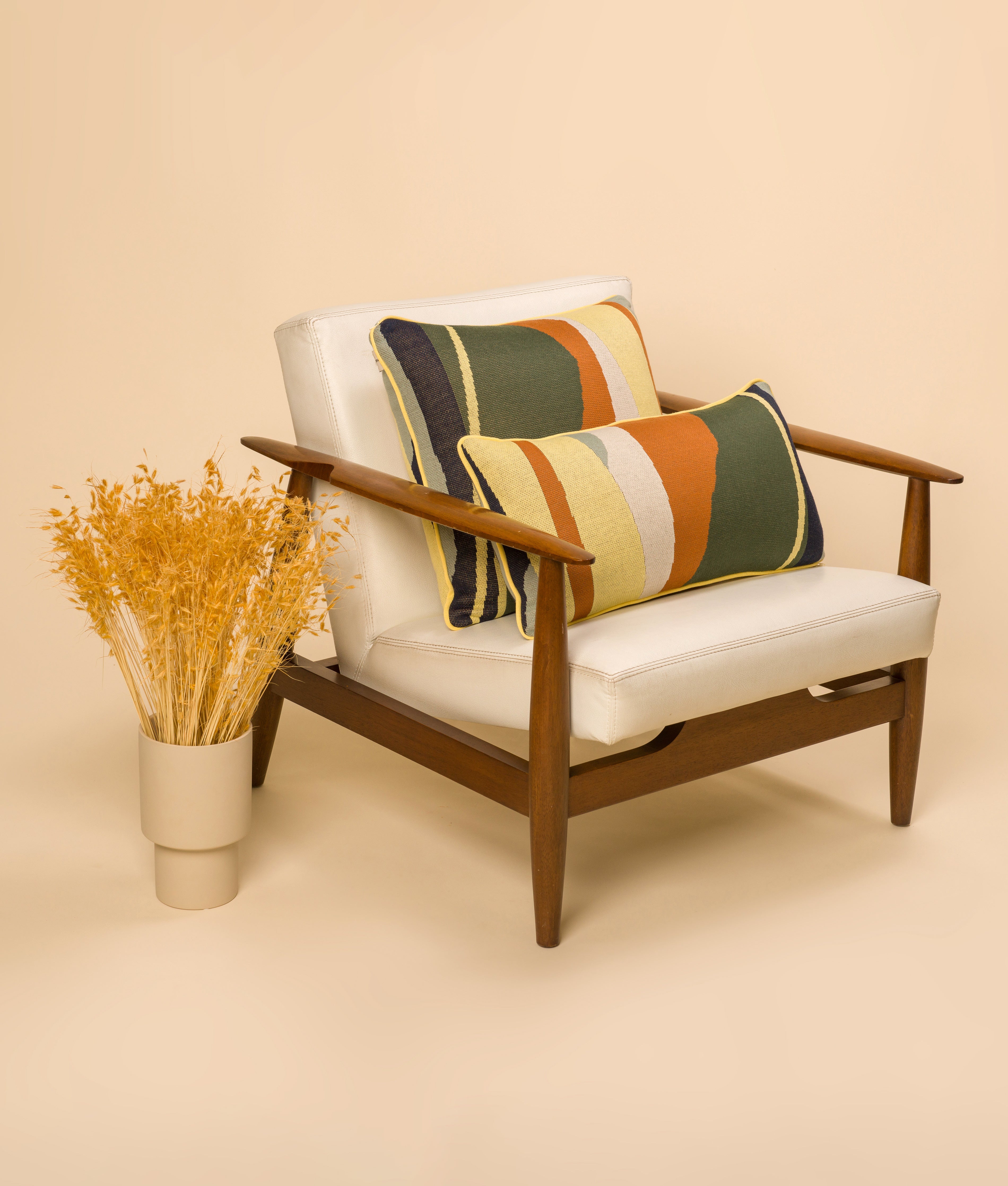 Almofada com capa lavável feita em tricô, recheio em manta acrílica e fechamento com zíper embutido. O tricô é feito com fio Seridó, à base de algodão, que proporciona muito conforto. Acabamento com vivo colorido ao redor da peça.