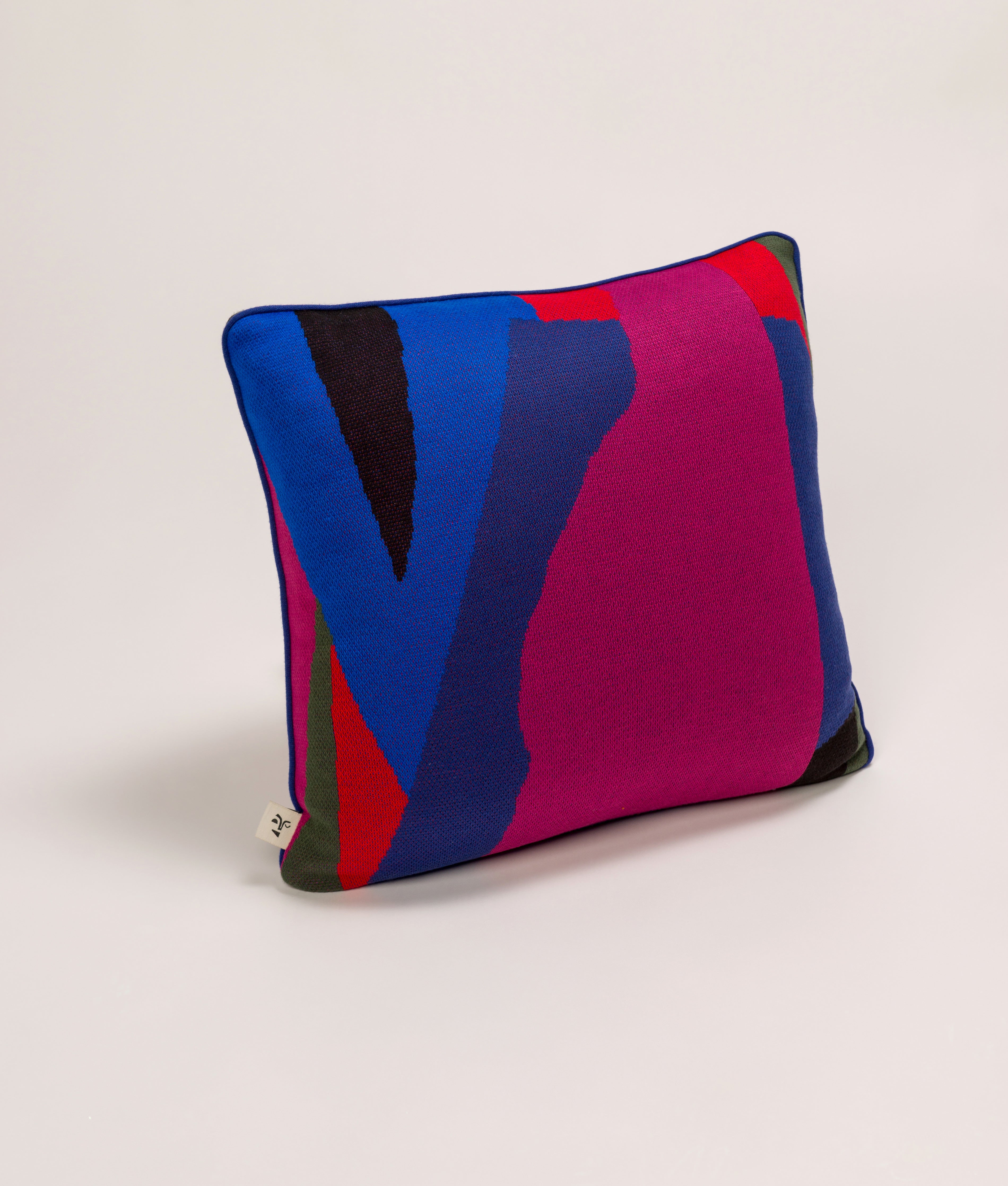 Almofada com capa lavável feita em tricô, recheio em manta acrílica e fechamento com zíper embutido. O tricô é feito com fio Seridó, à base de algodão, que proporciona muito conforto. Acabamento com vivo colorido ao redor da peça.