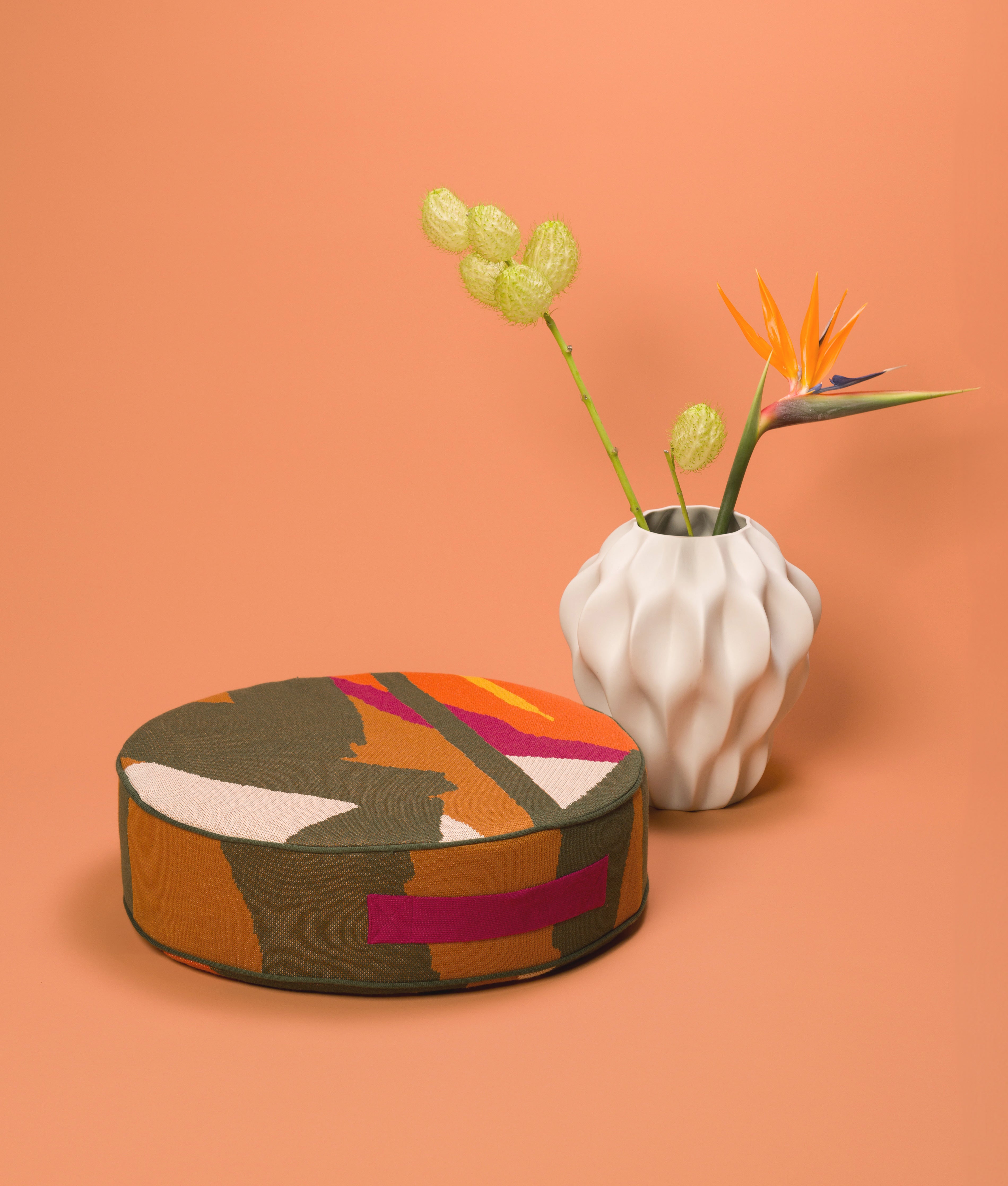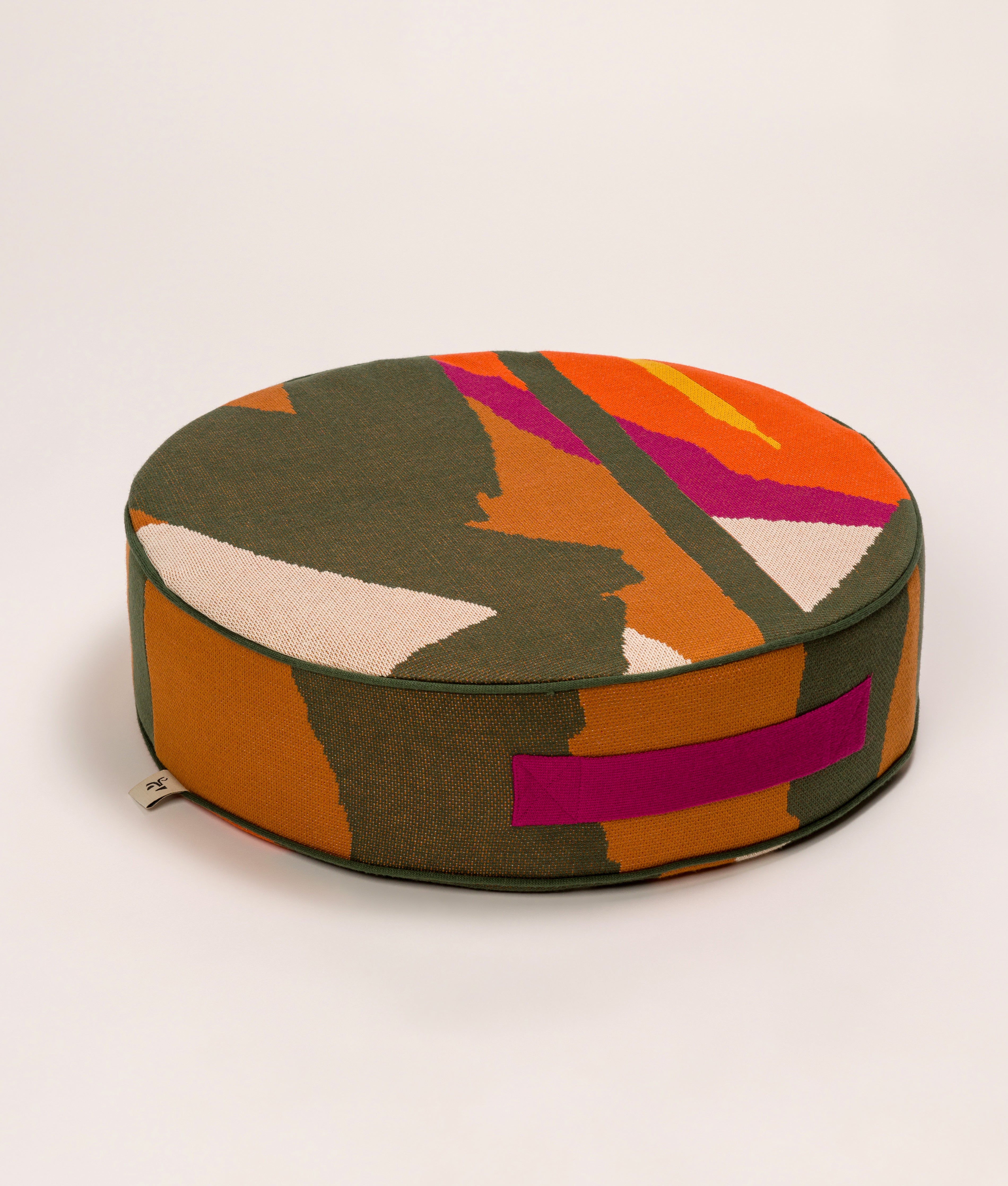 Almofada tipo pufe com capa lavável feita em tricô com fio Seridó - à base de algodão - e recheio em espuma D28. A capa da almofada possui fechamento com zíper e alça para que você possa carregar com facilidade. O recheio é protegido por capa de malha costurada à mão.