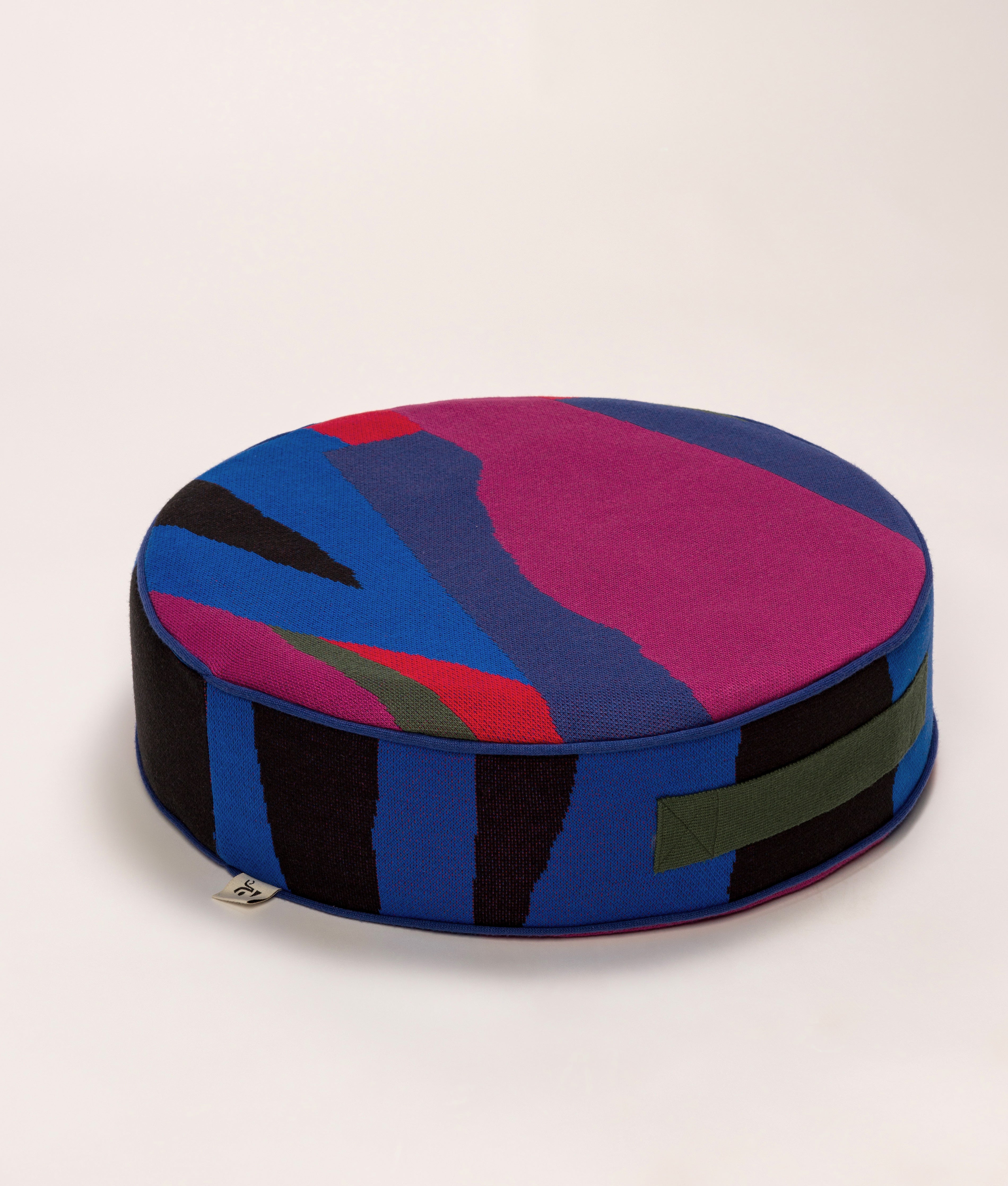 Almofada tipo pufe com capa lavável feita em tricô com fio Seridó - à base de algodão - e recheio em espuma D28. A capa da almofada possui fechamento com zíper e alça para que você possa carregar com facilidade. O recheio é protegido por capa de malha costurada à mão.