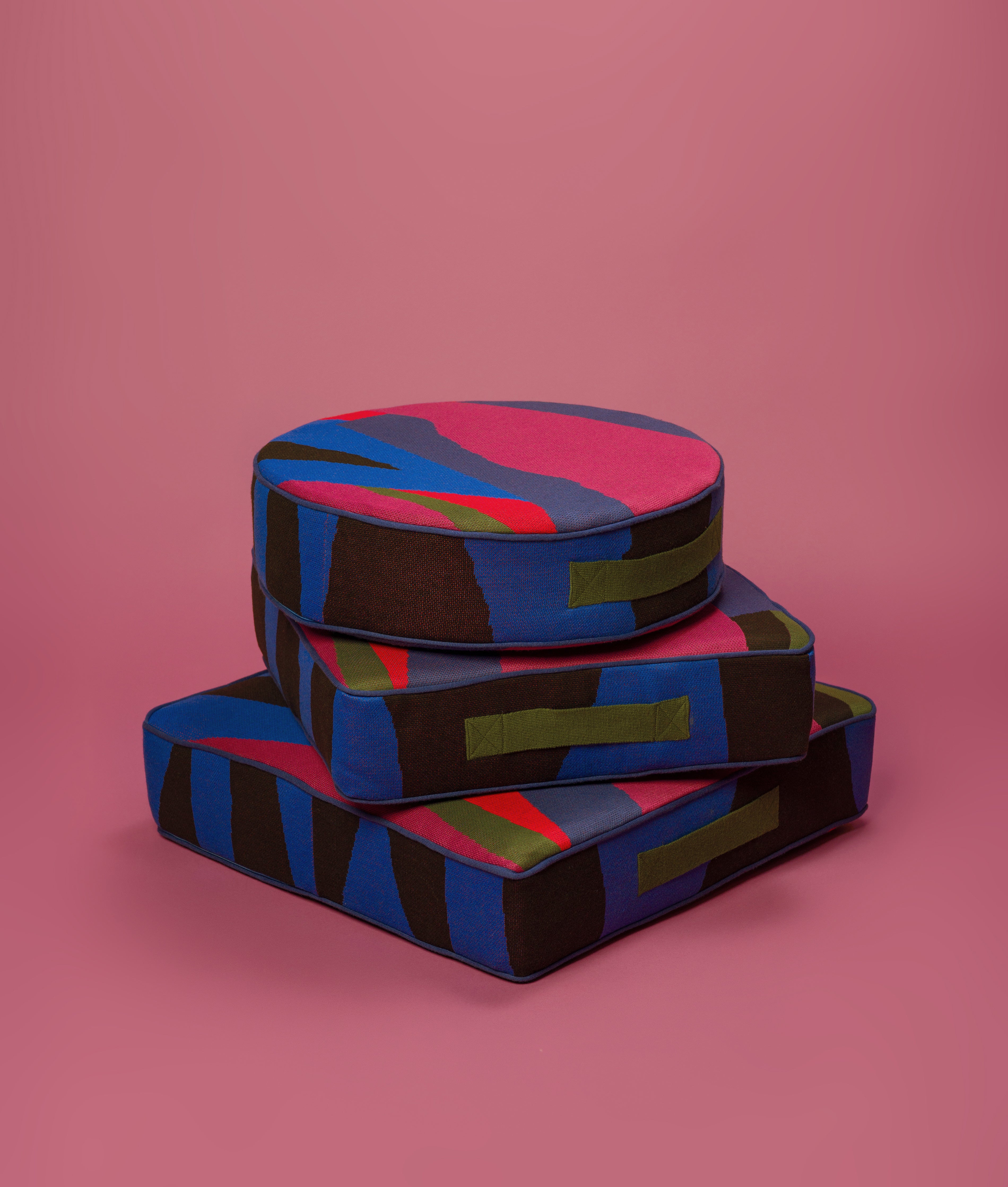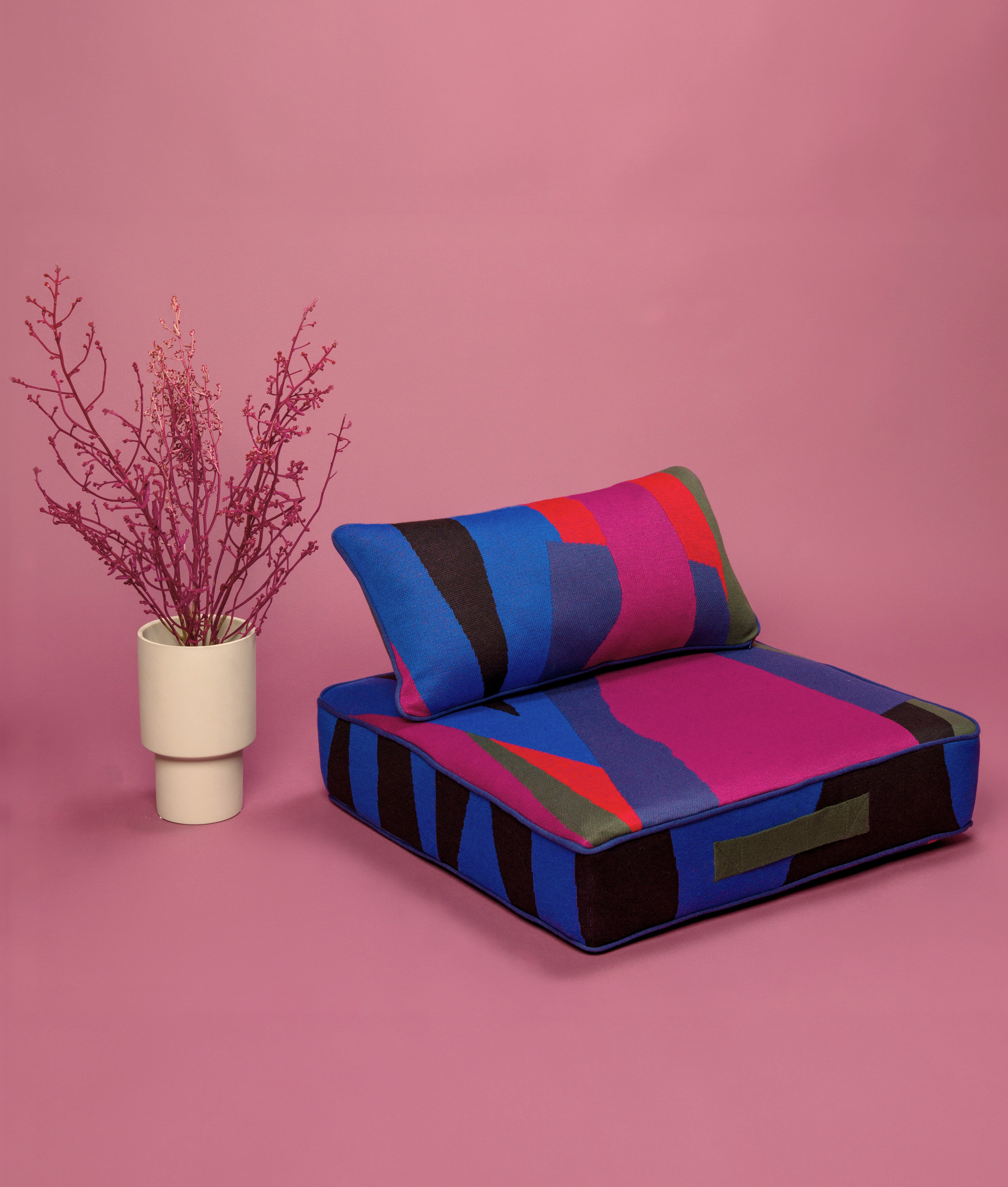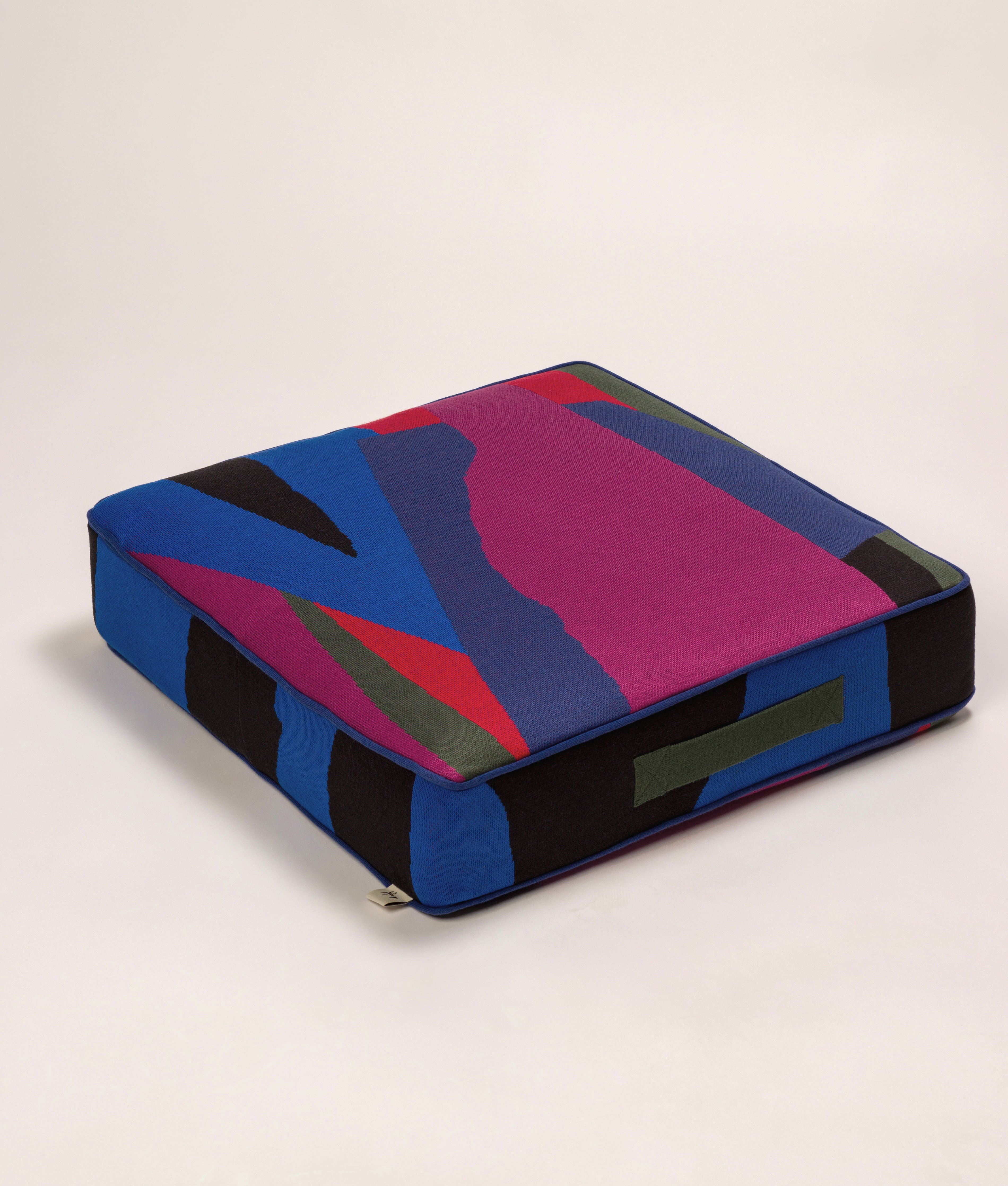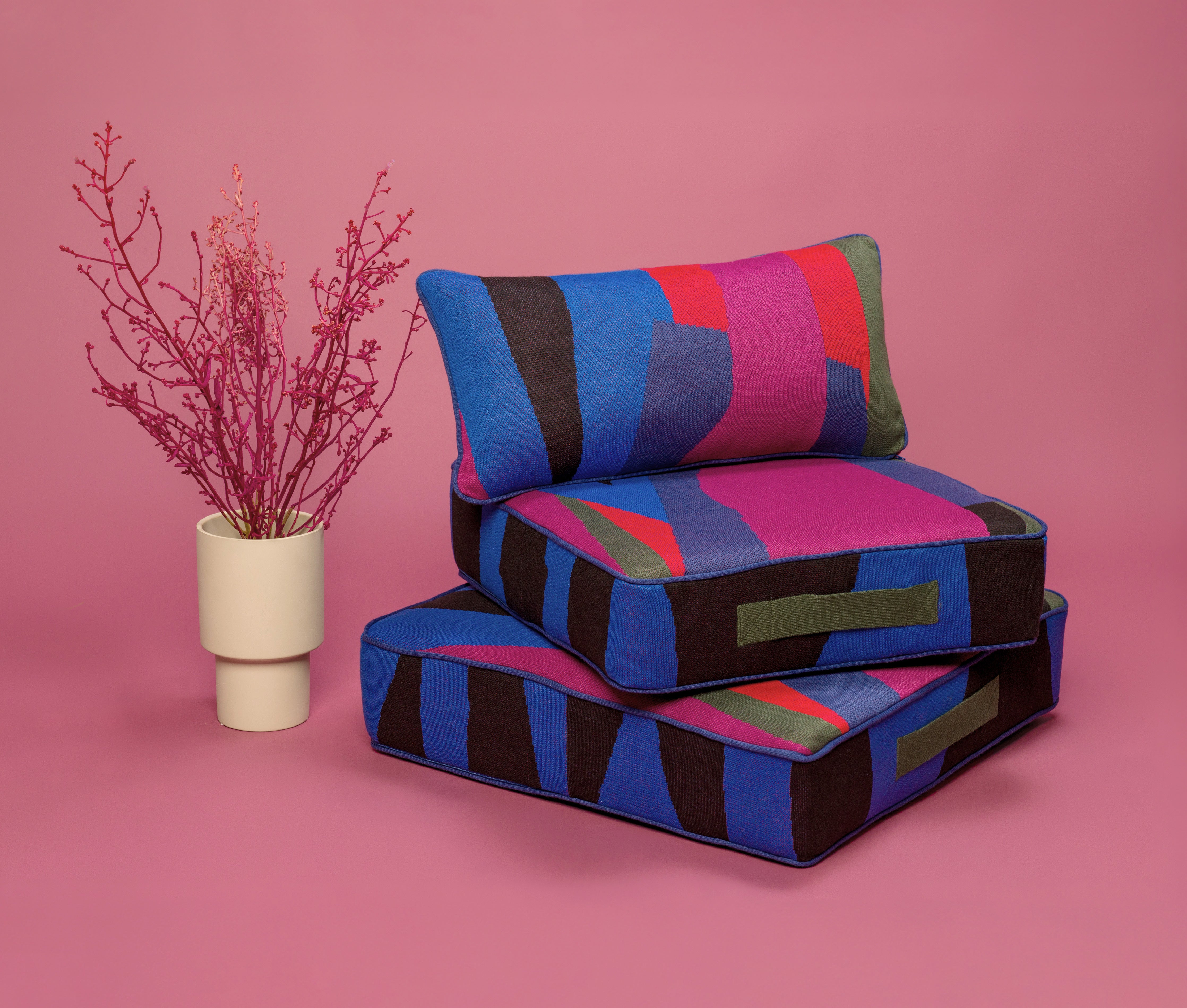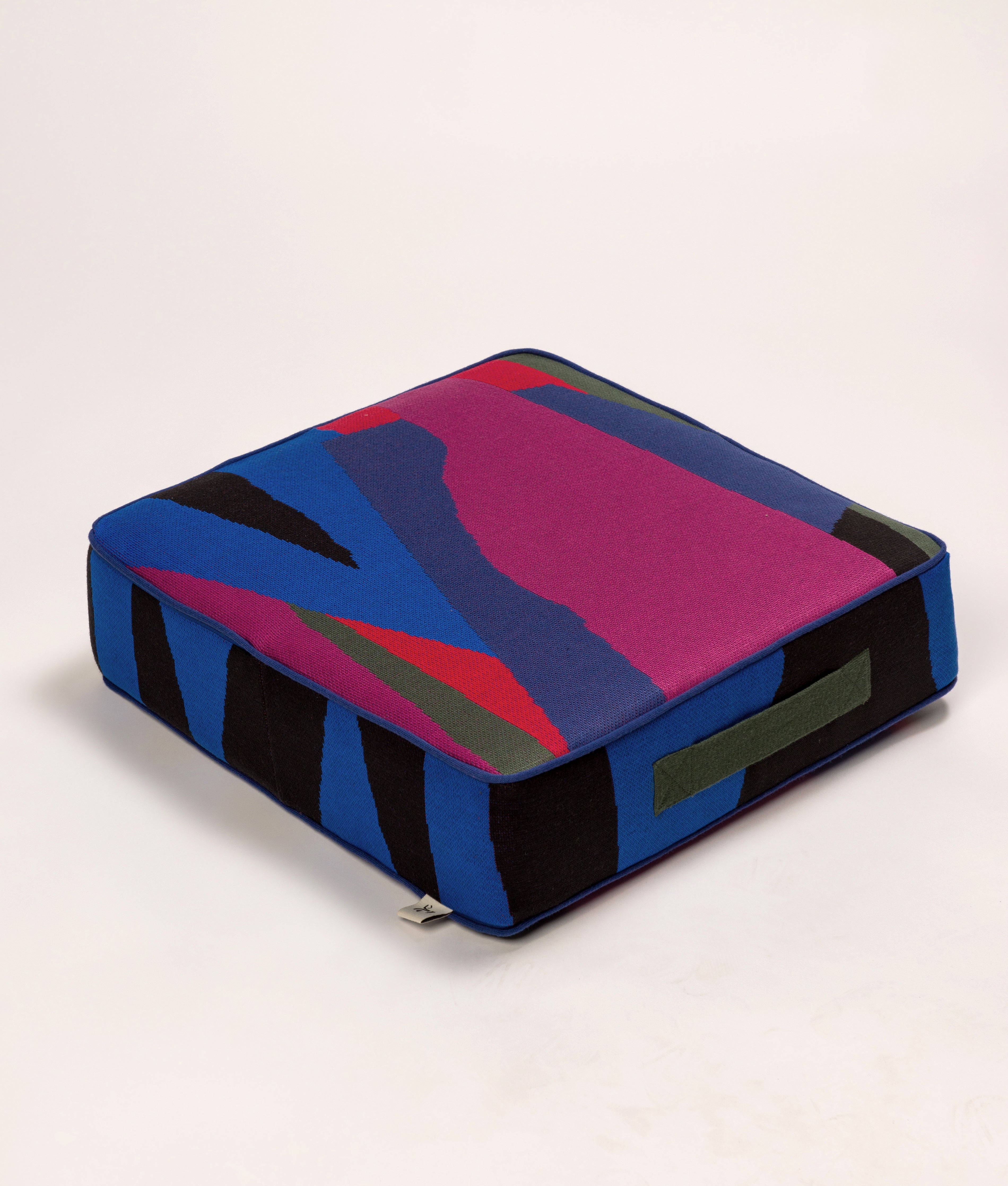 Almofada tipo pufe com capa lavável feita em tricô com fio Seridó - à base de algodão - e recheio em espuma D28. A capa da almofada possui fechamento com zíper e alça para que você possa carregar com facilidade. O recheio é protegido por capa de malha costurada à mão.