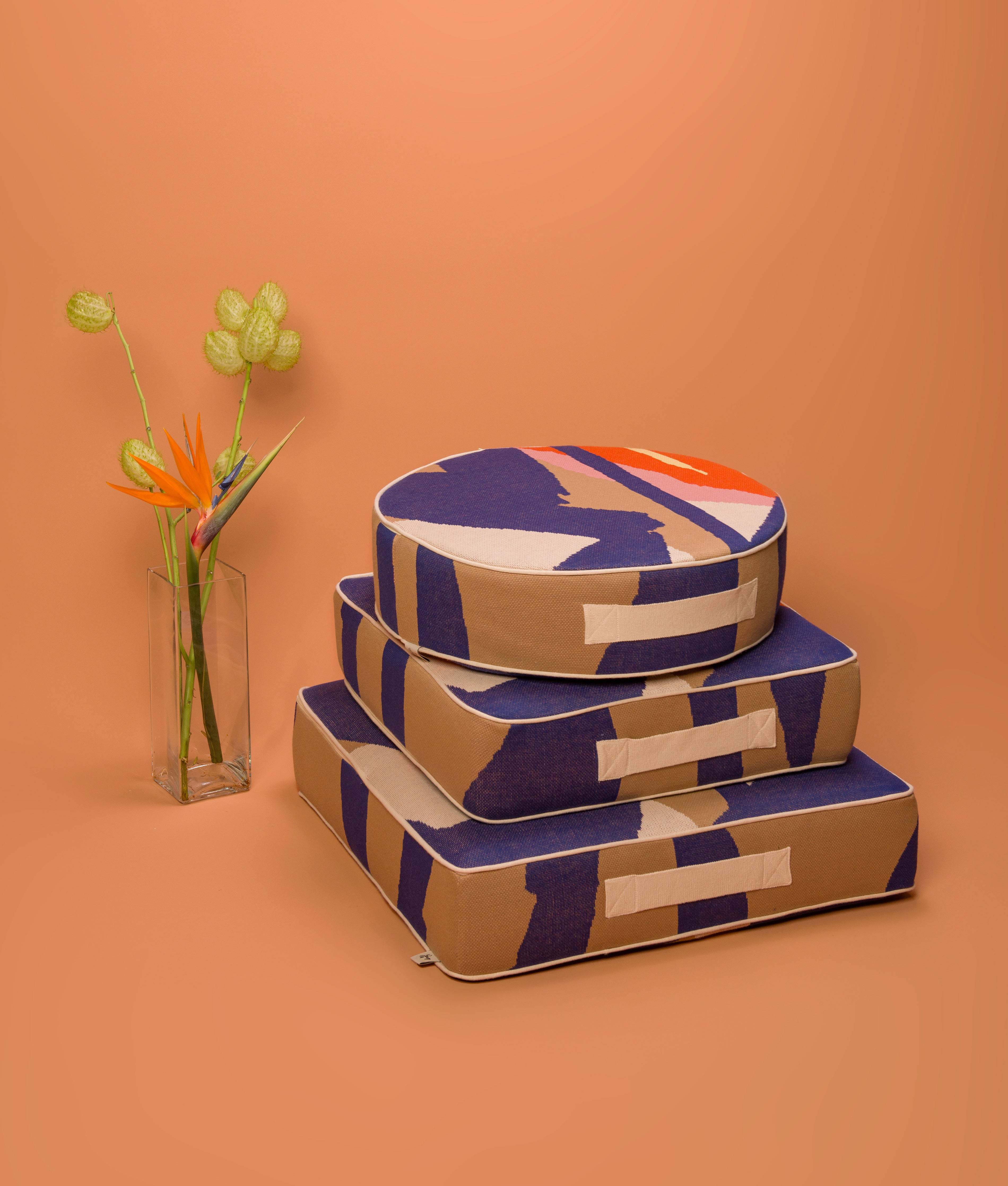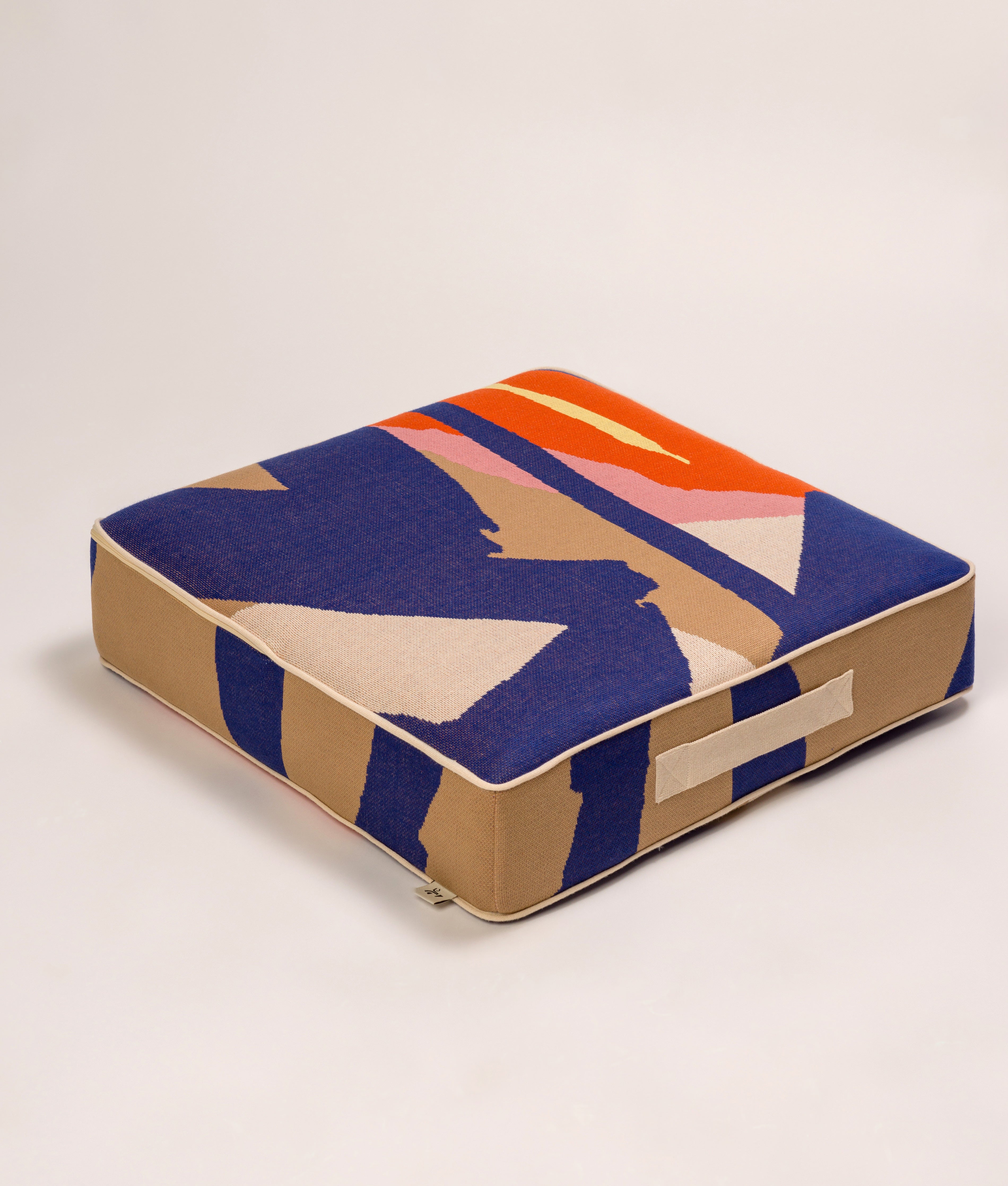 Almofada tipo pufe com capa lavável feita em tricô e recheio em espuma D28. A capa da almofada possui fechamento com ziper e alça para que você possa carregar com facilidade. O recheio é protegido por capa de malha costurada à mão.