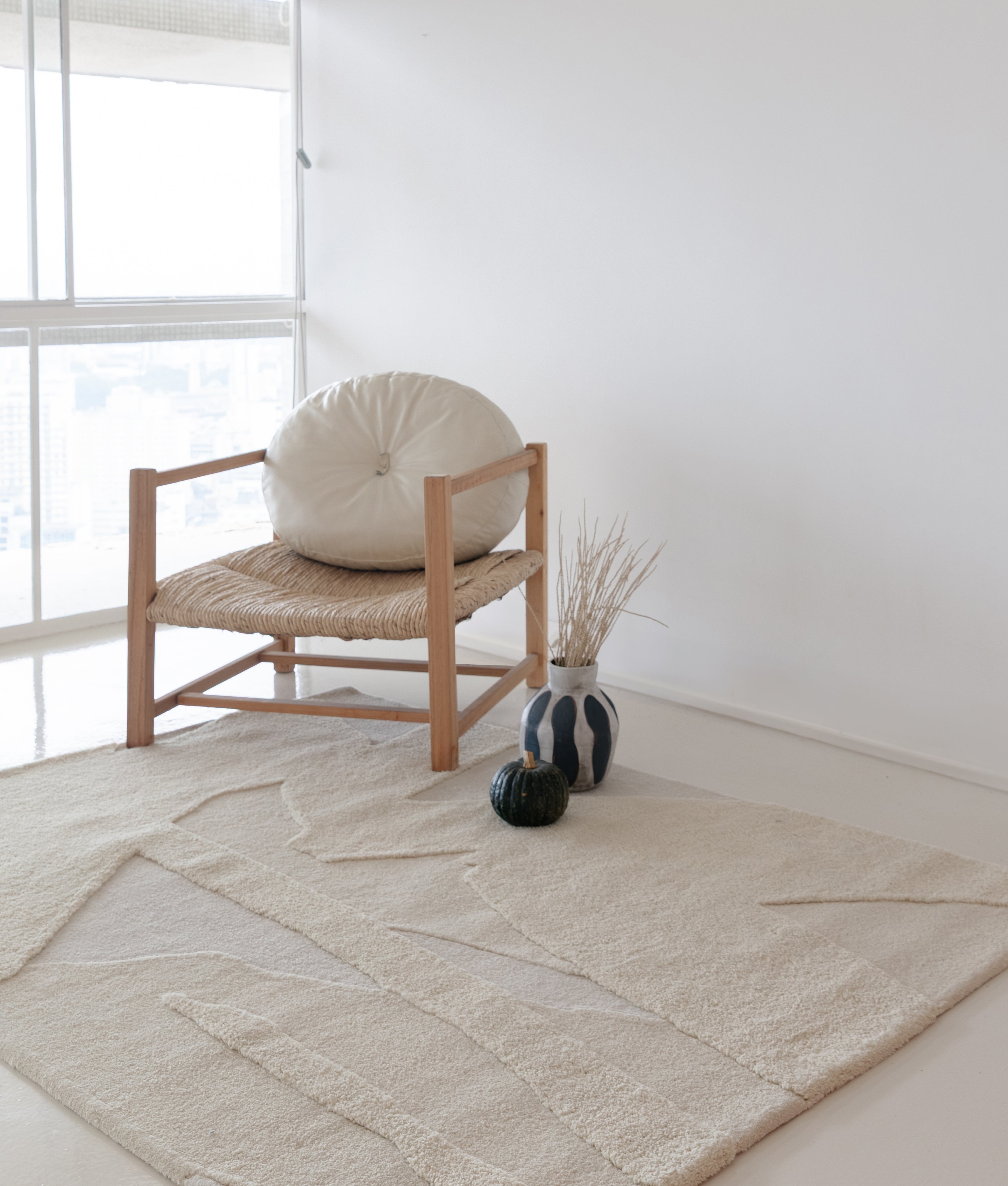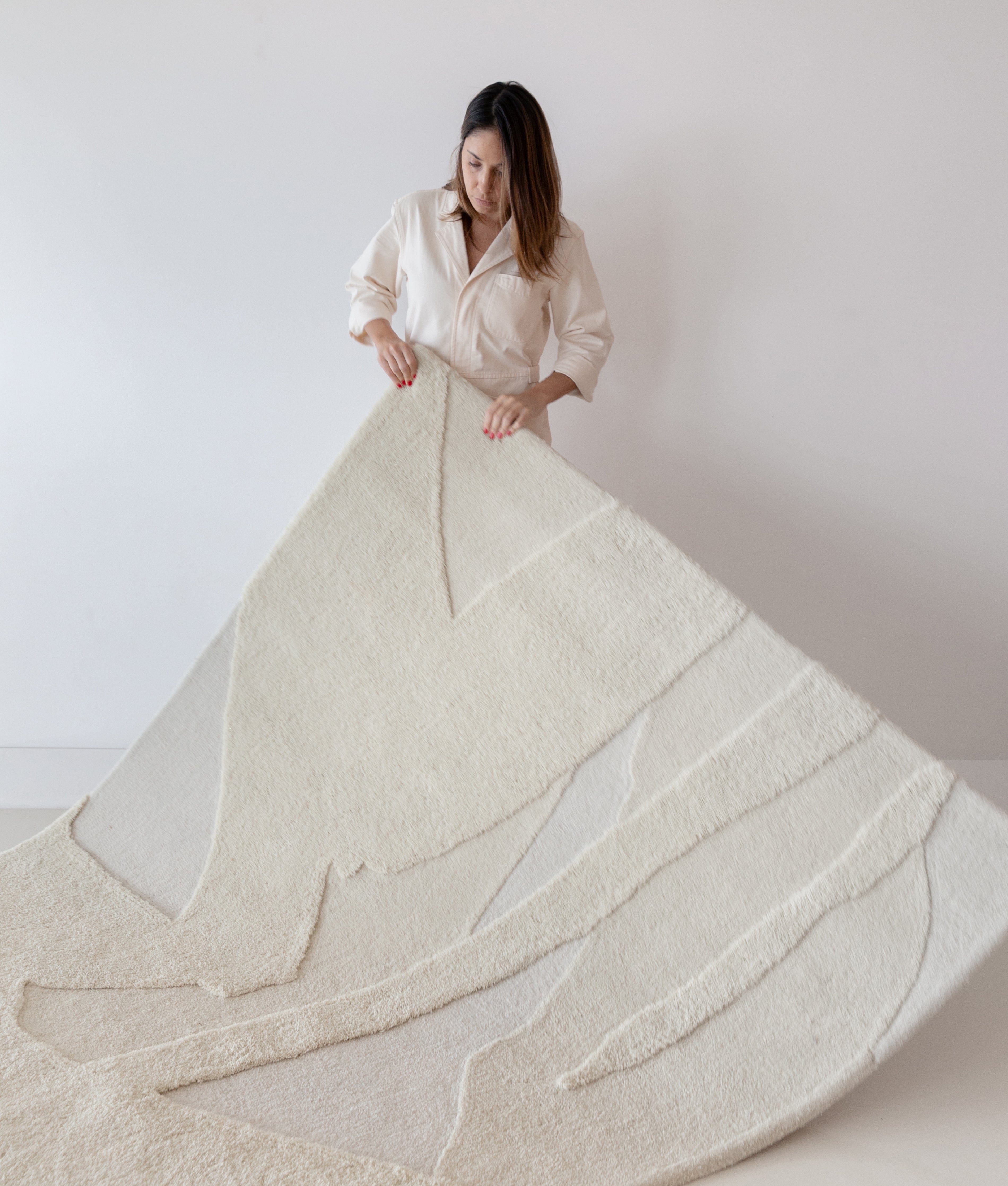 Desenho original feito à mão e fabricação semi-artesanal em tufting.