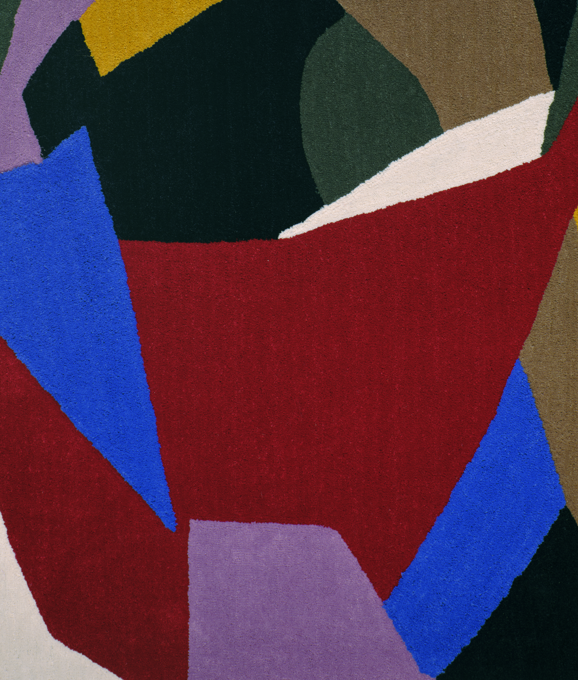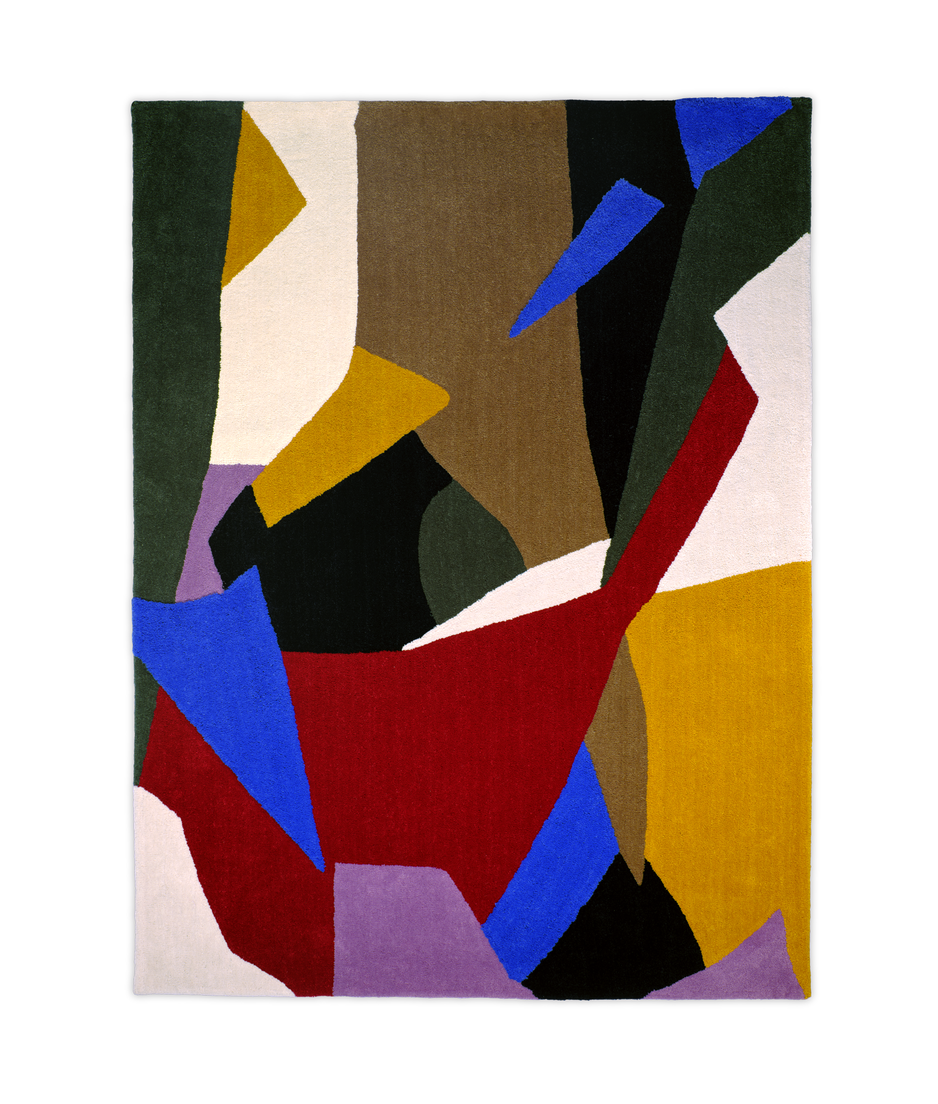 Desenho original criado com colagem em papel e fabricação semi-artesanal em tufting. Acabamentos manuais.
