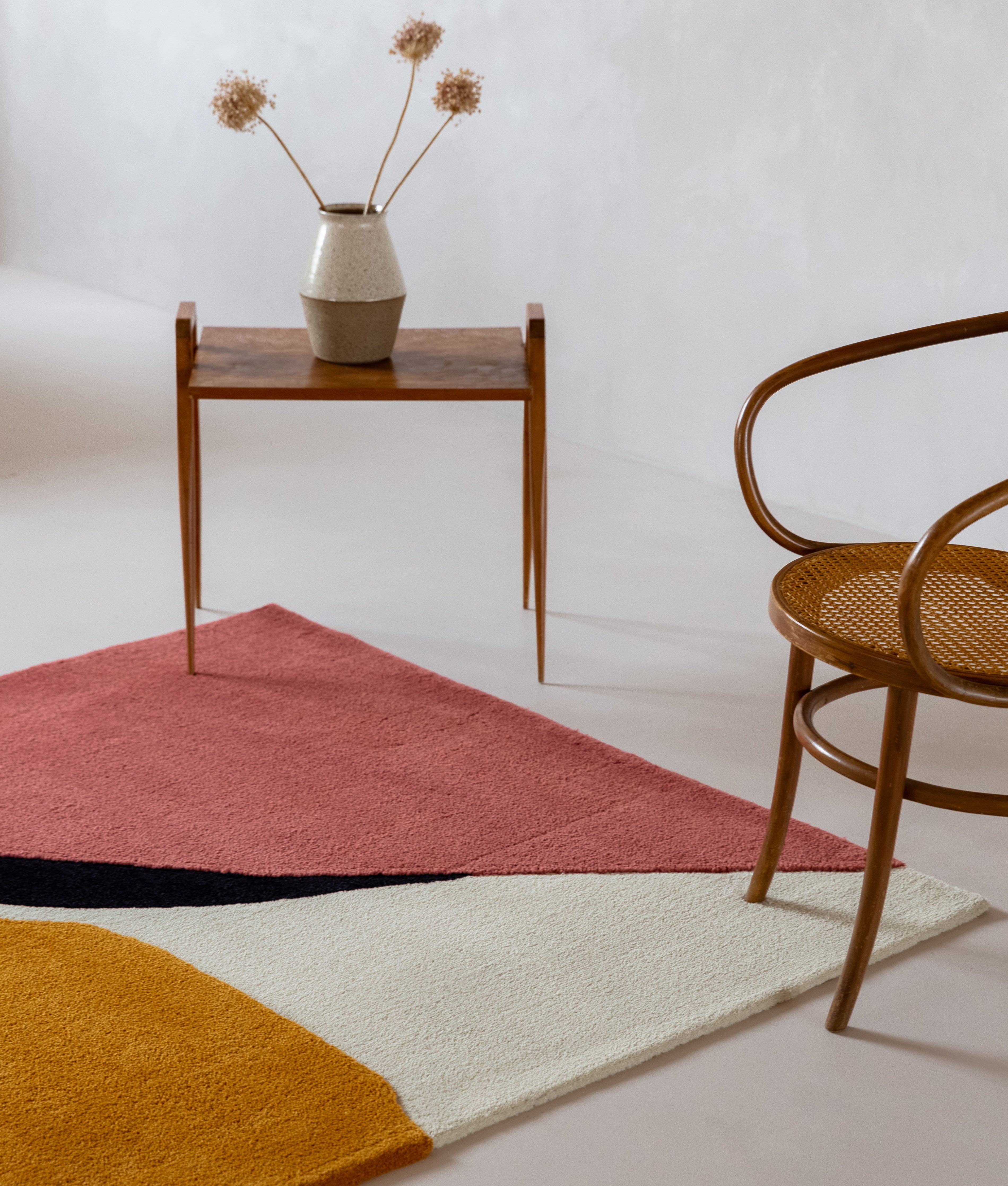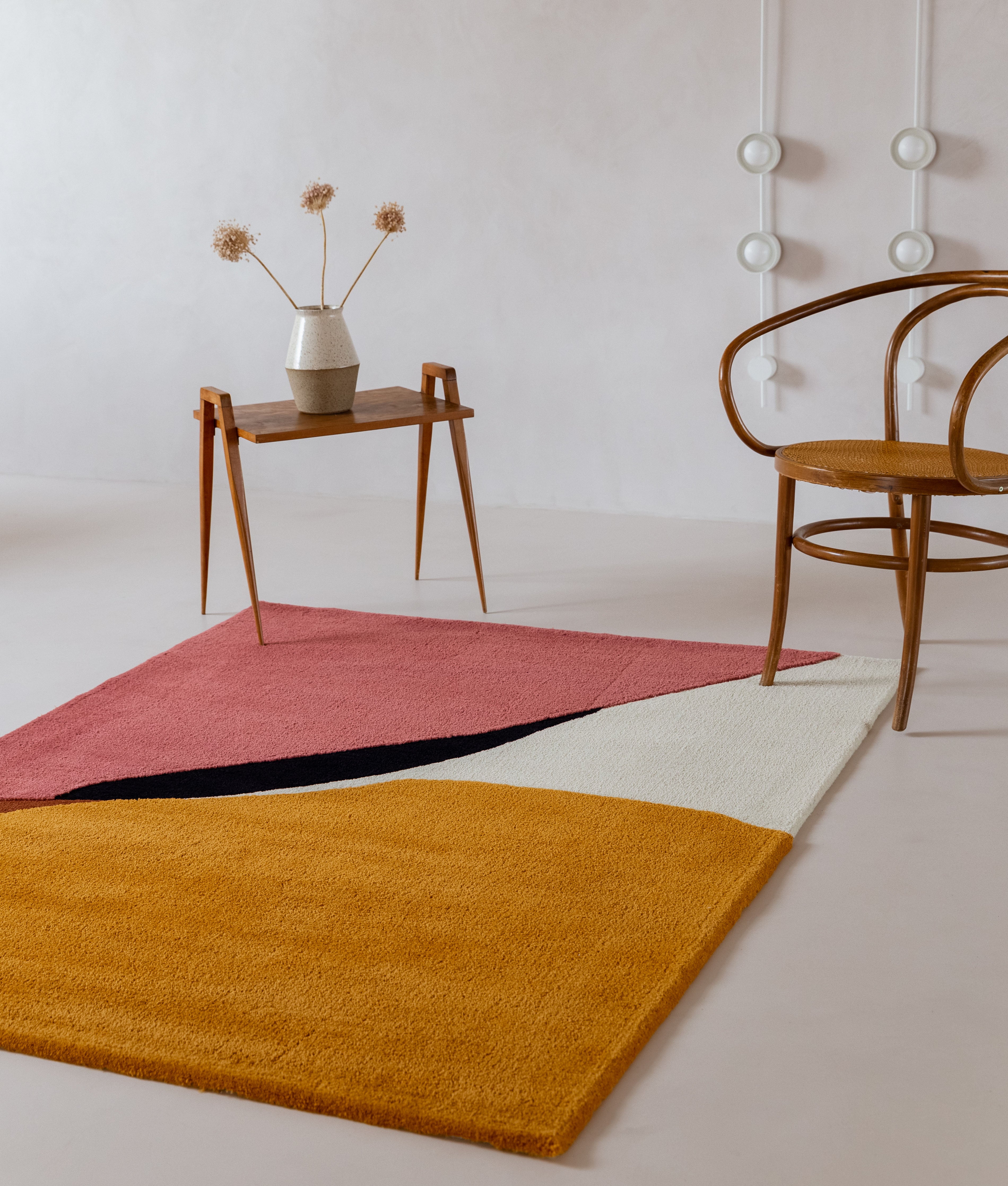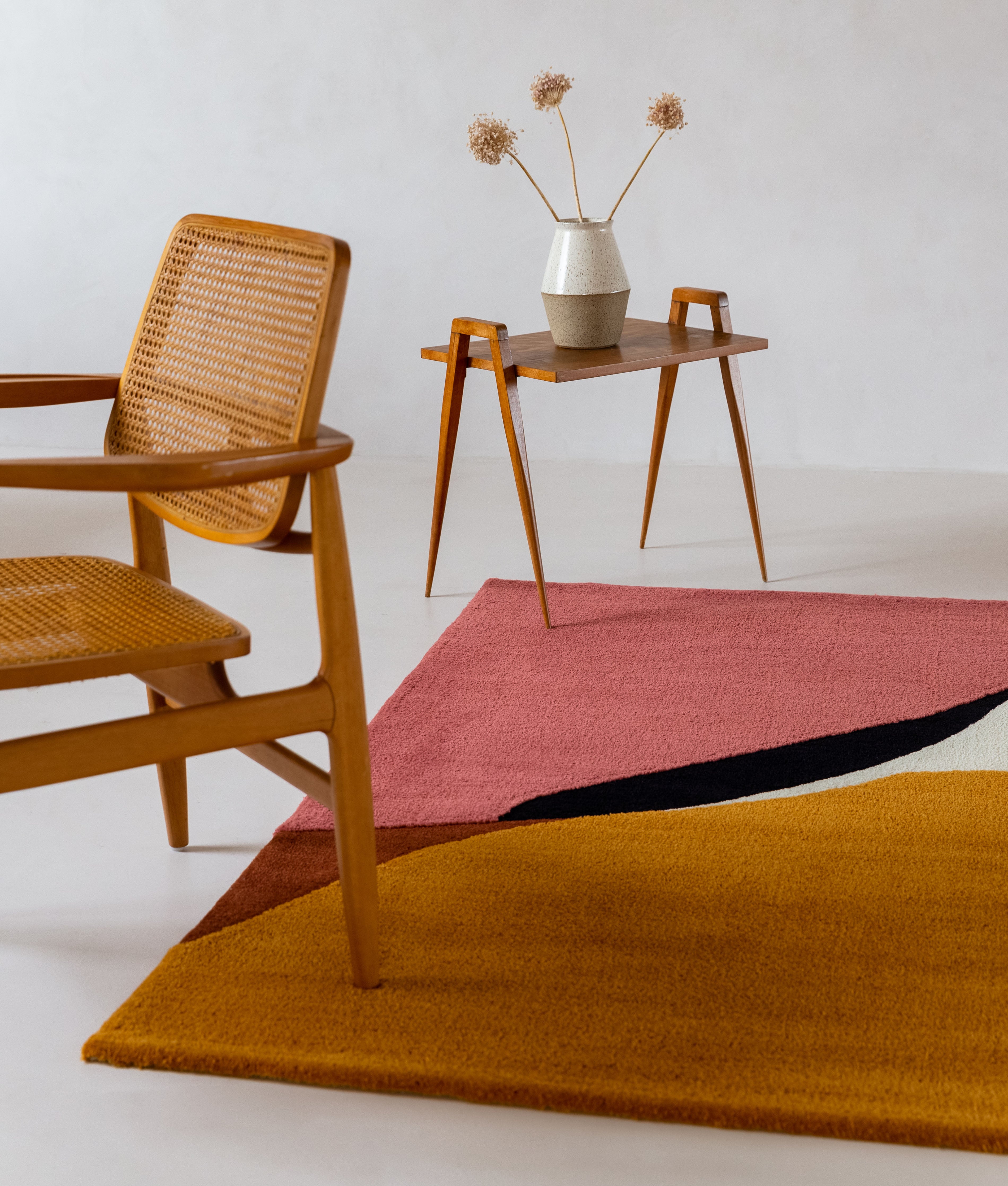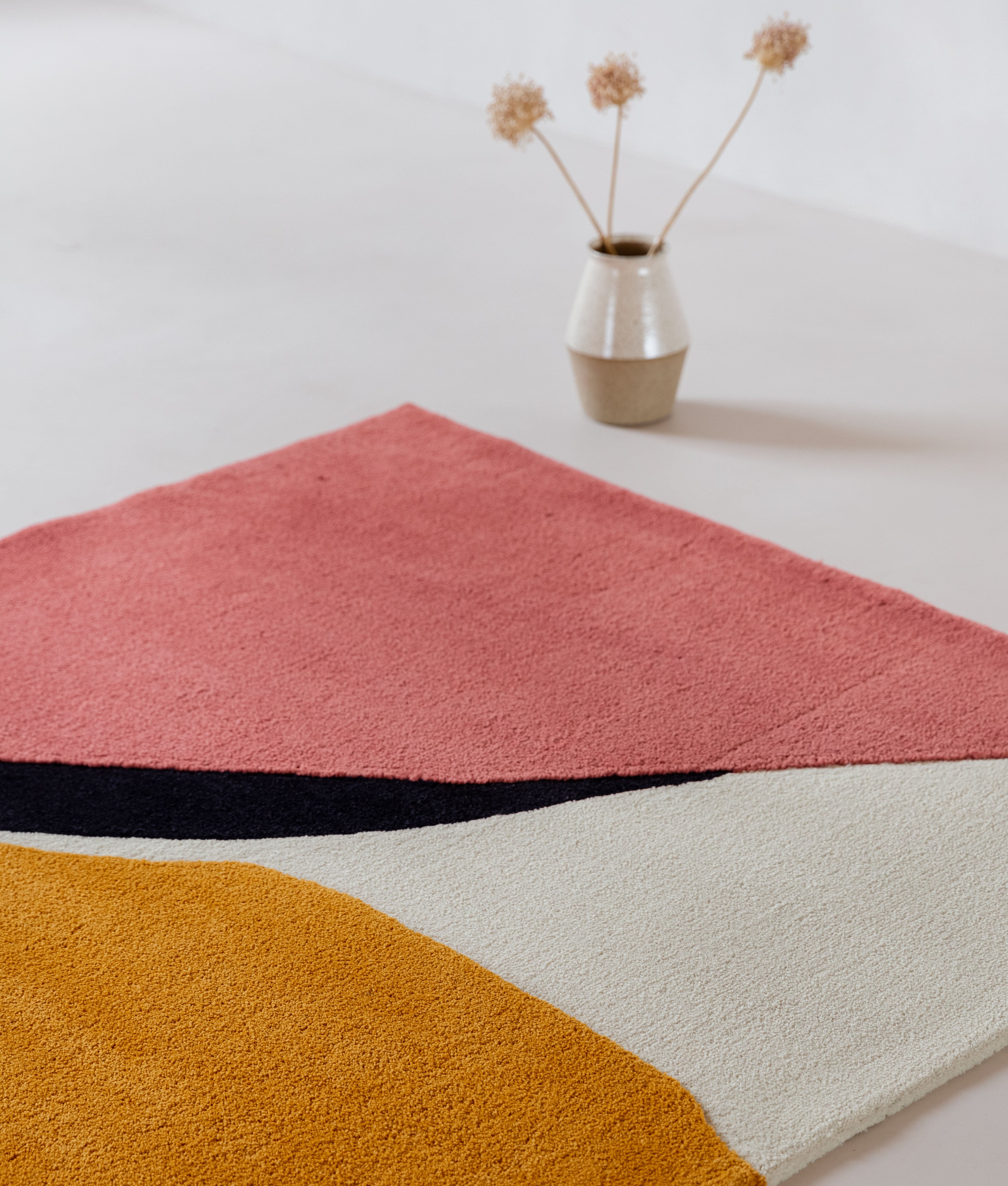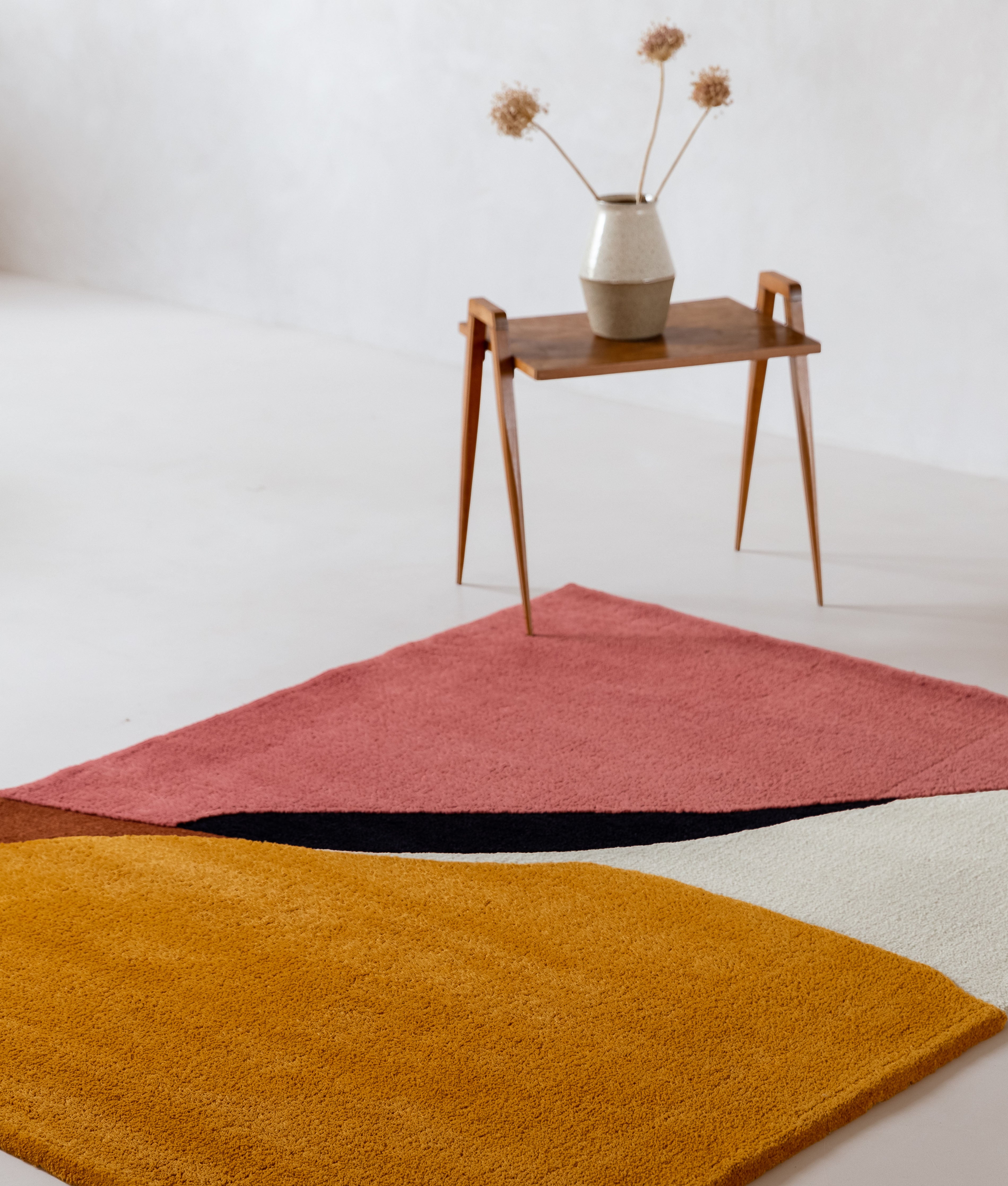 Tapete com desenho original modular criado a partir de colagens em papel e fabricação semi-artesanal em tufting. Textura super macia, com relevos localizados.