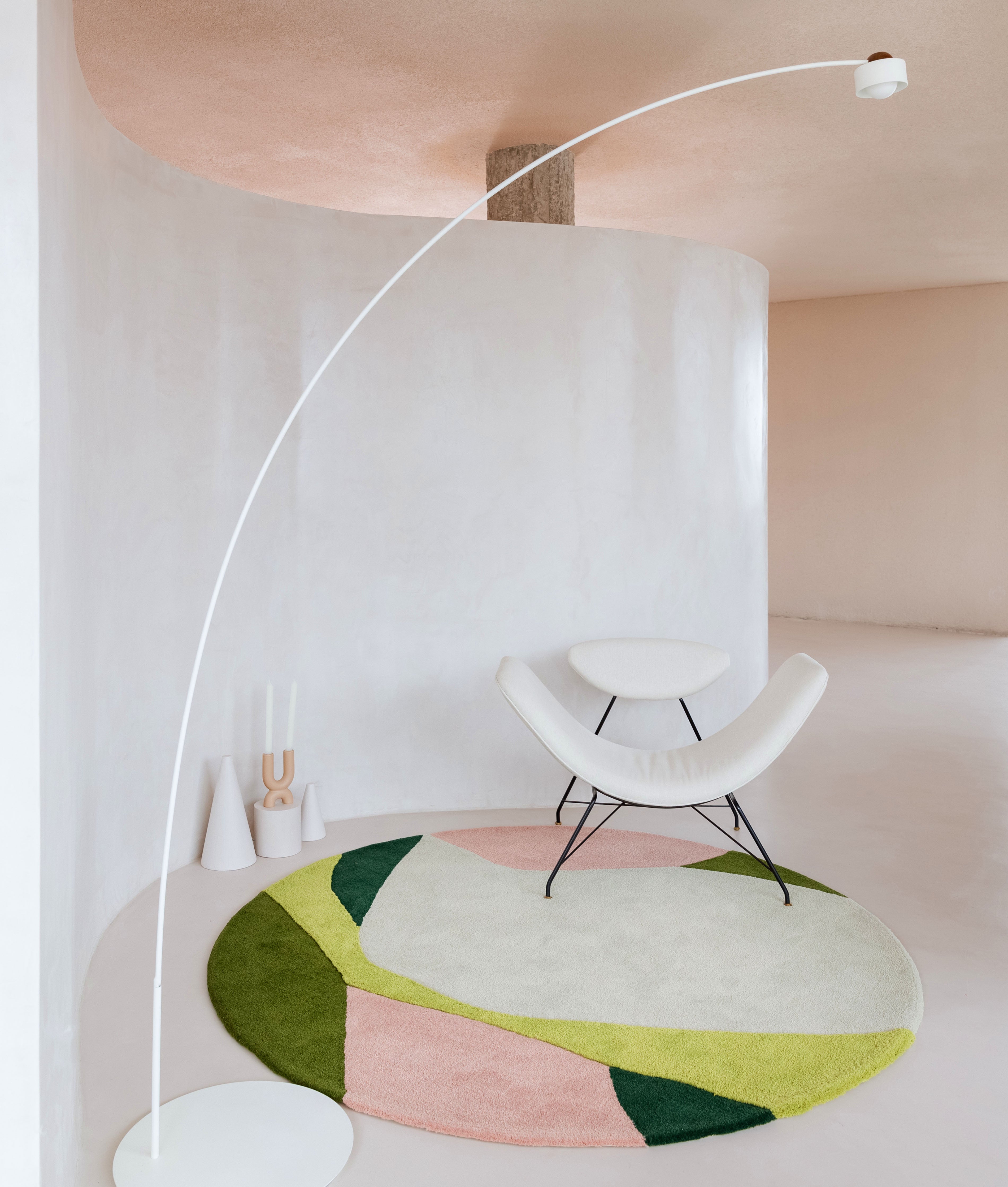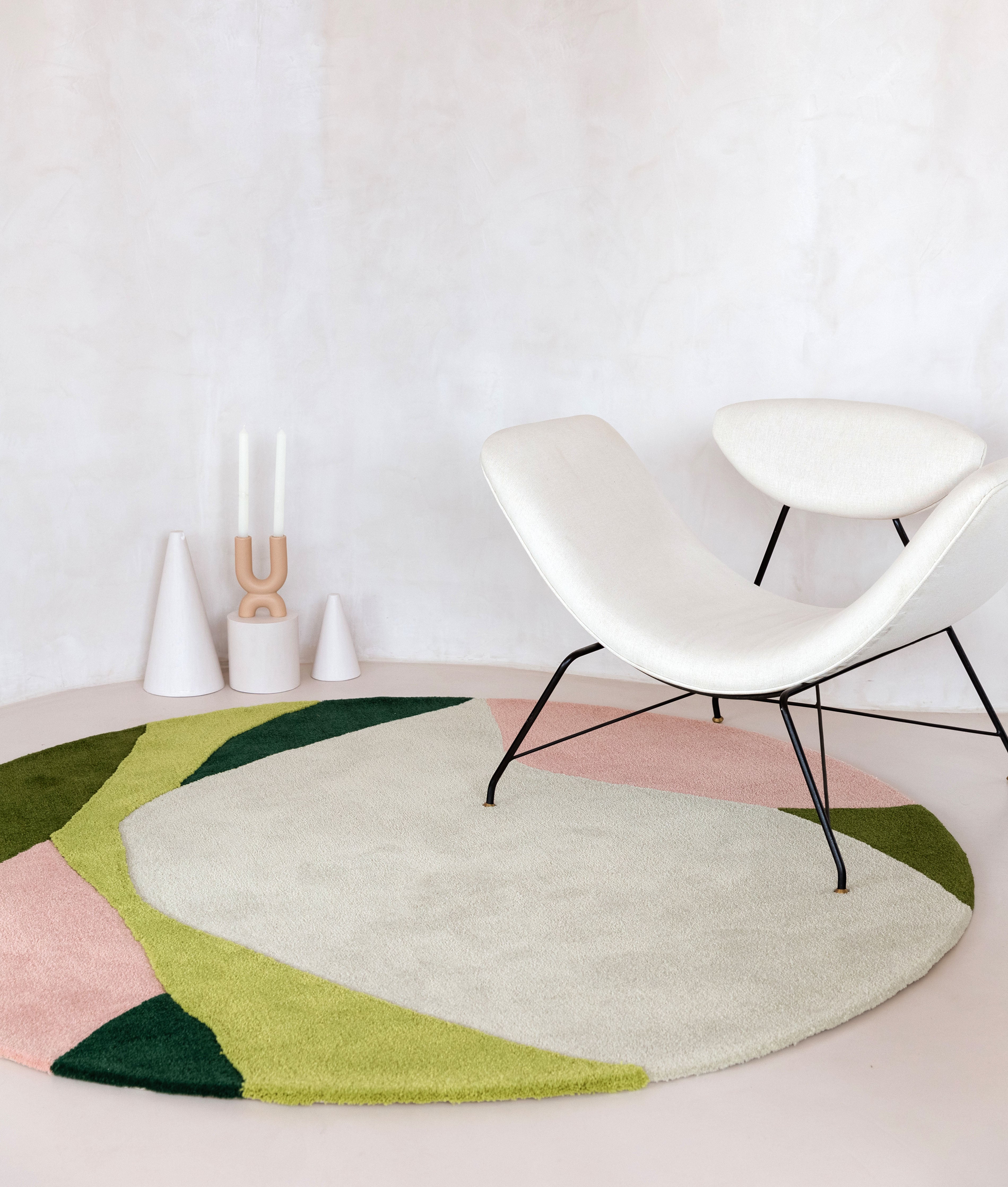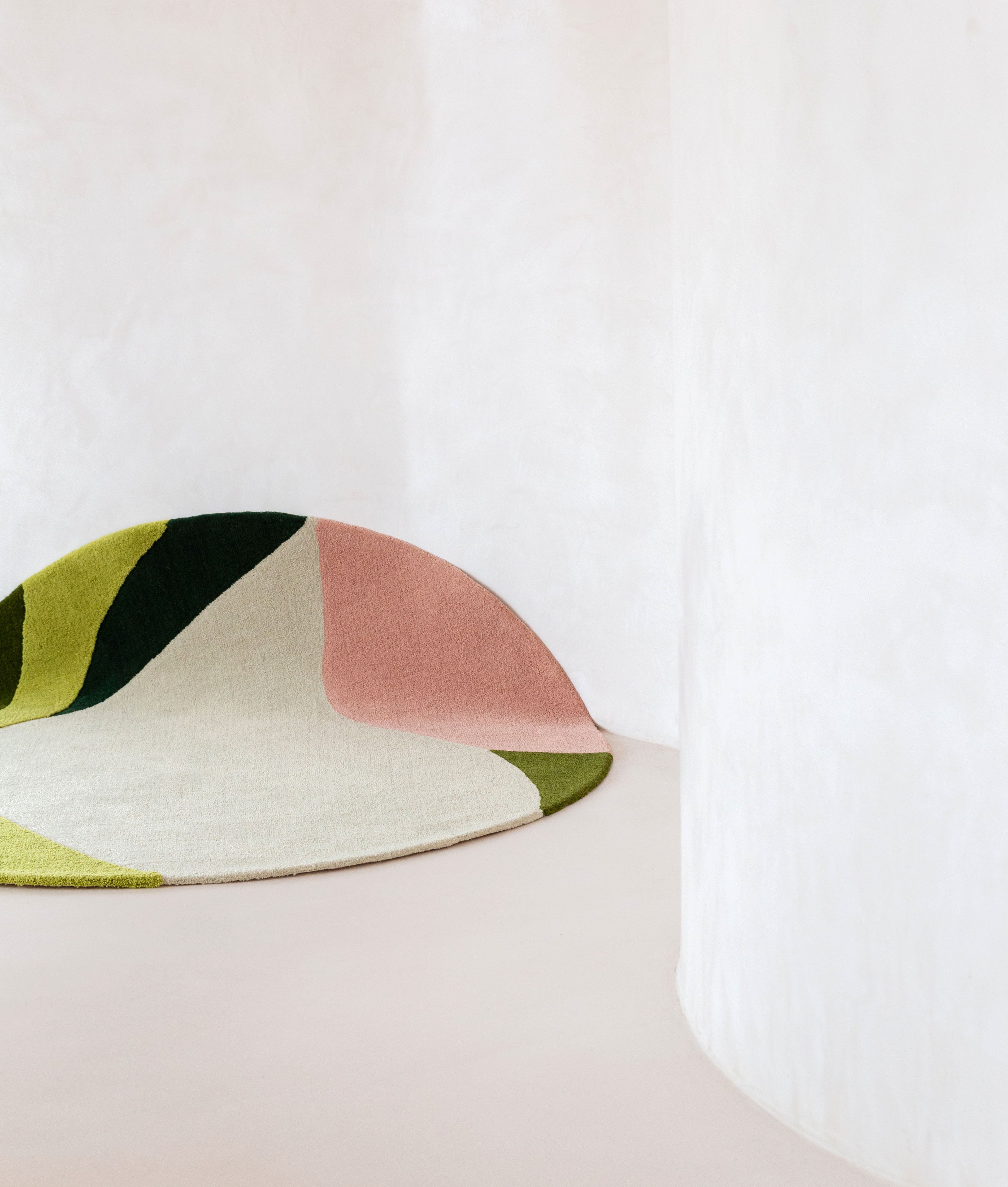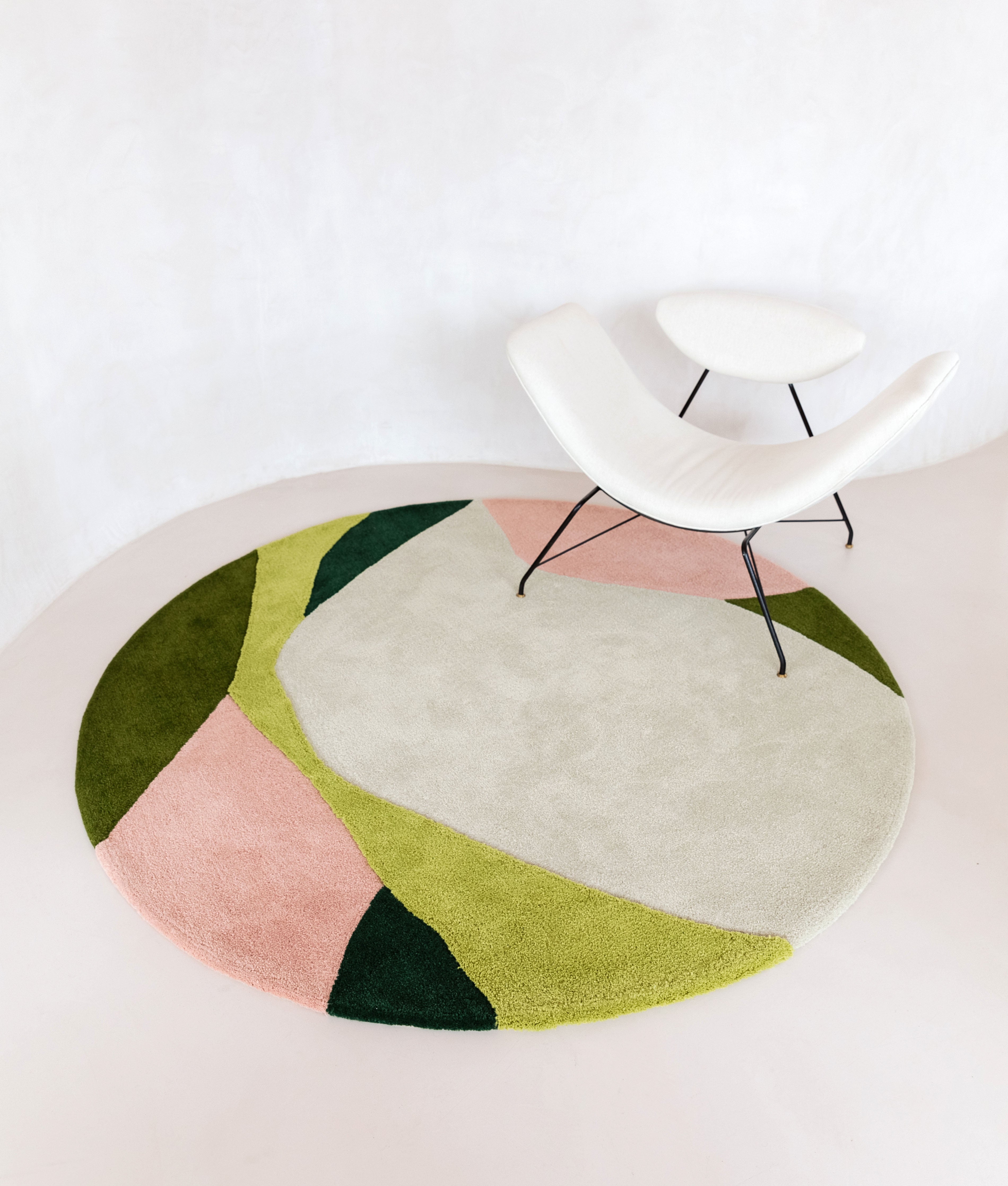 Tapete com desenho original modular criado a partir de colagens em papel e fabricação semi-artesanal em tufting. Textura super macia, com relevos localizados.