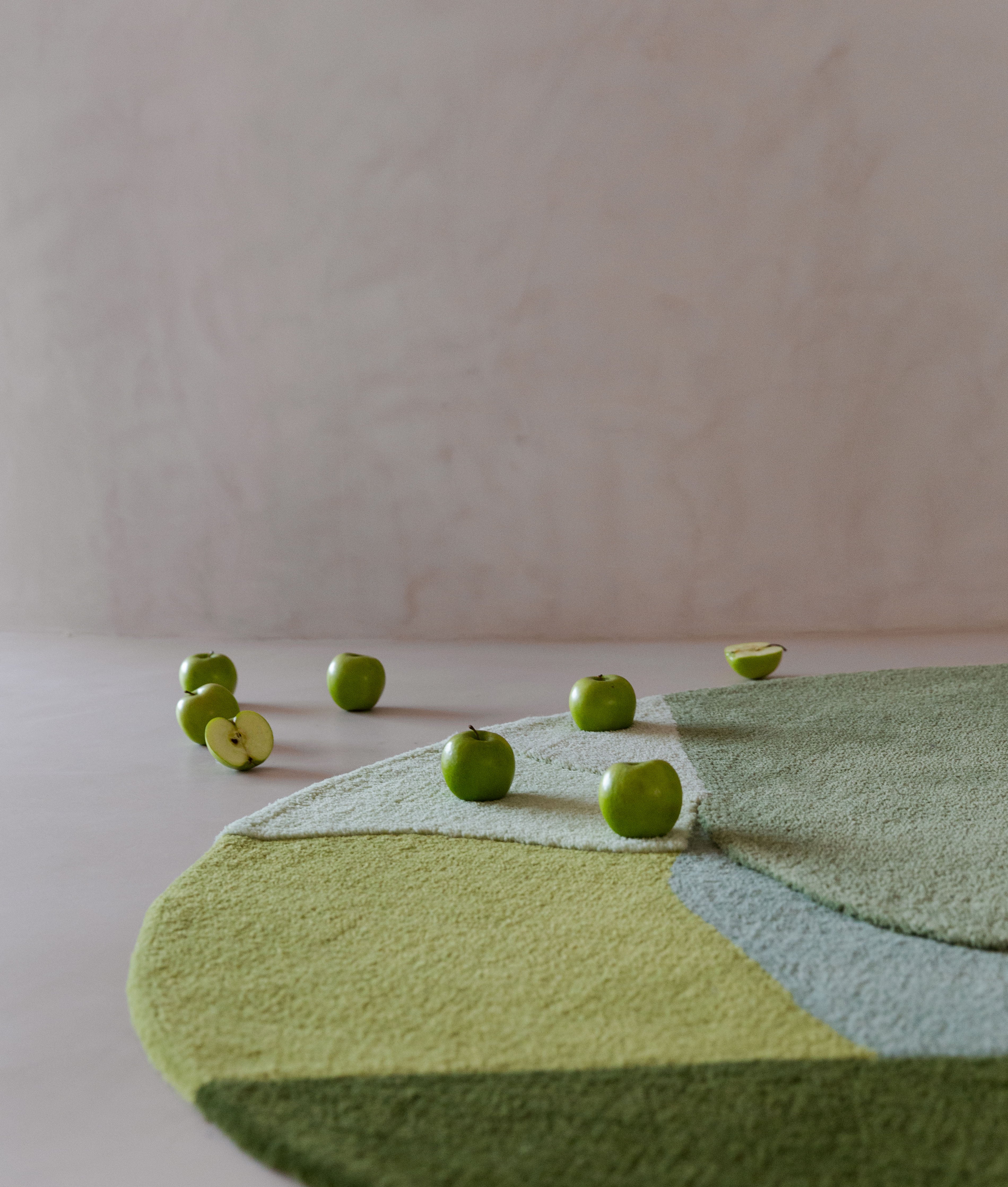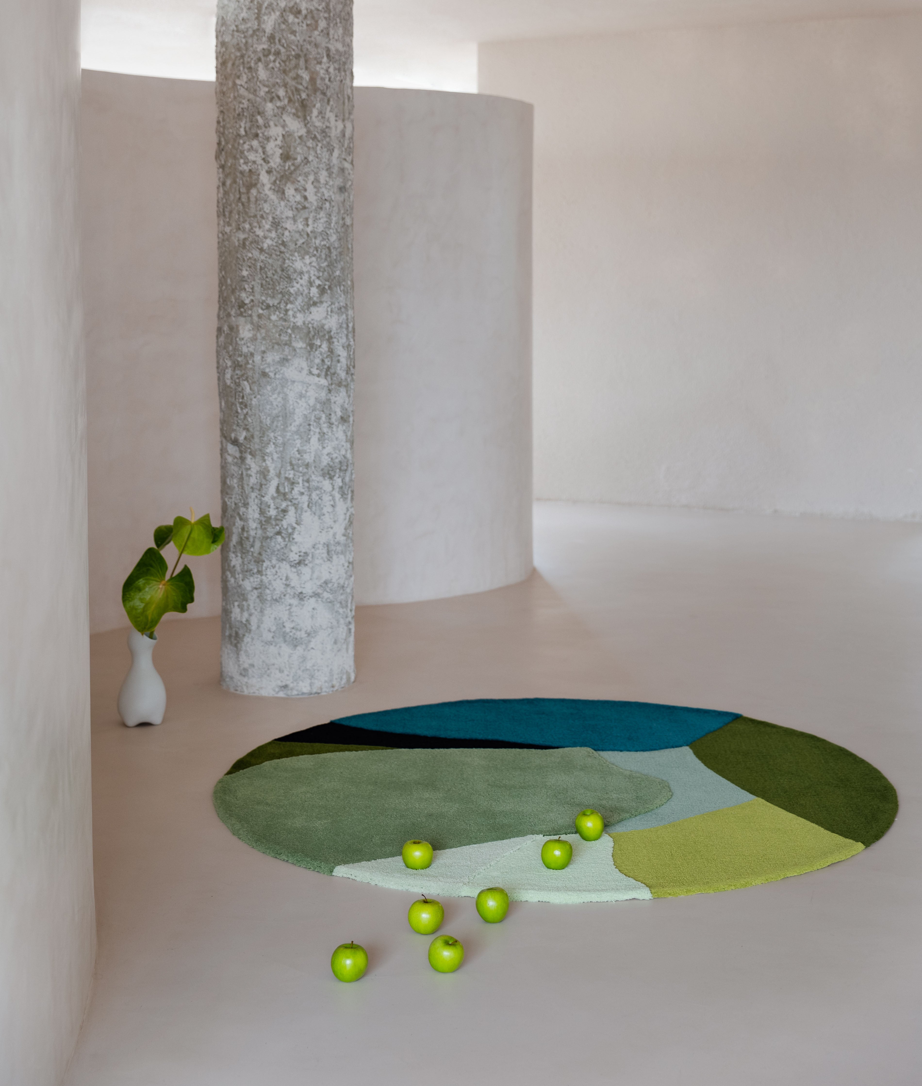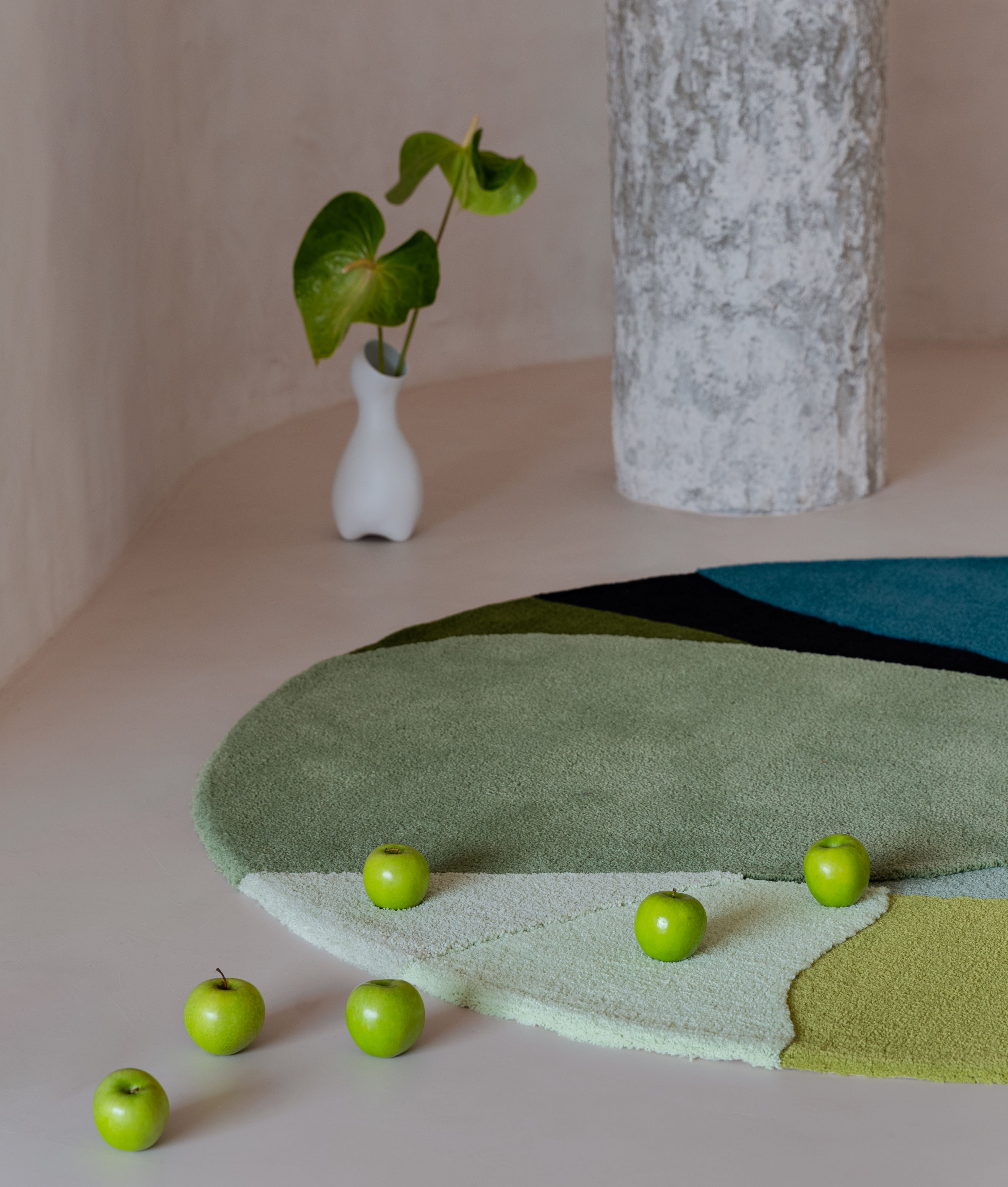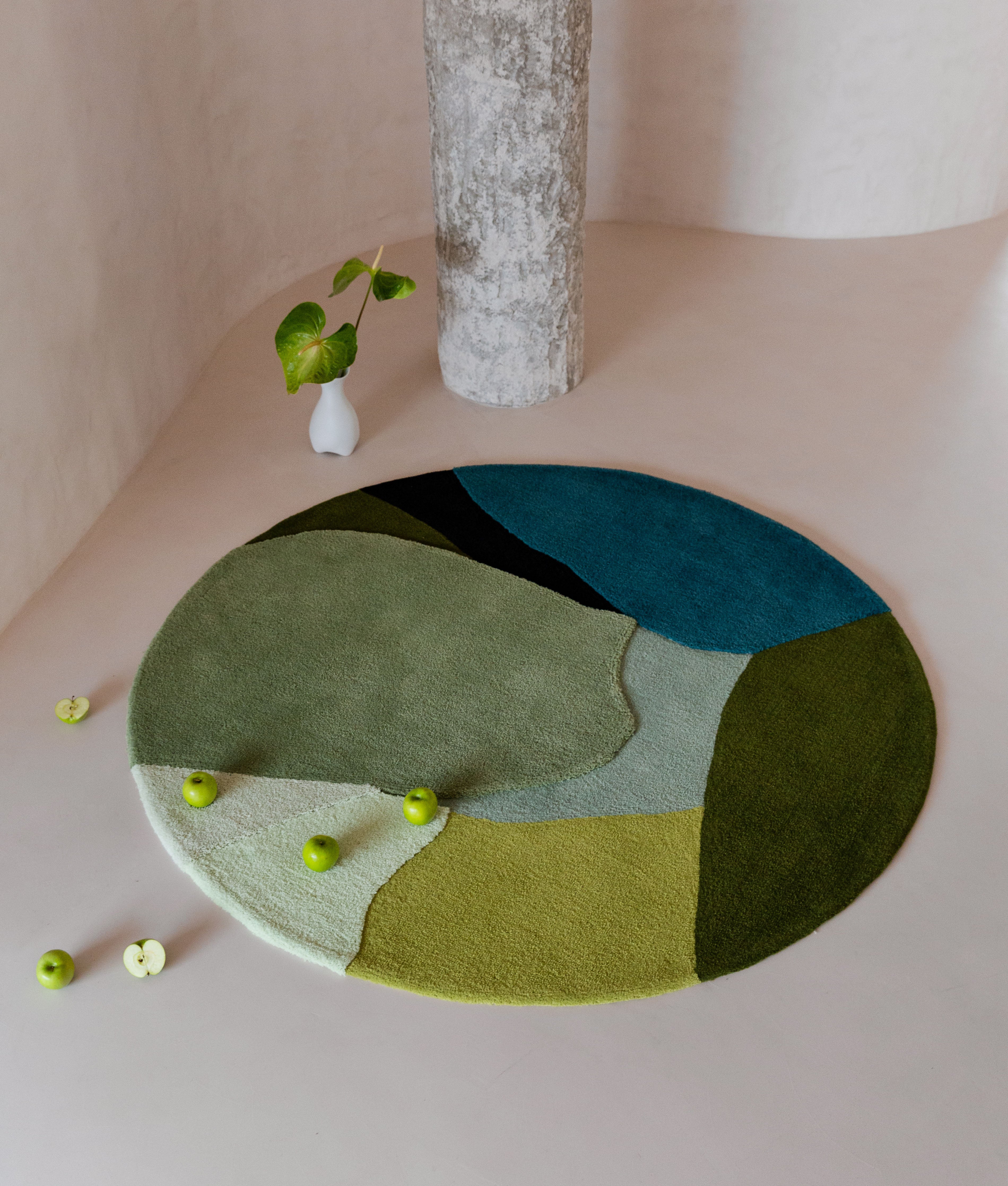 Desenho original feito à mão e fabricação semi-artesanal em tufting.