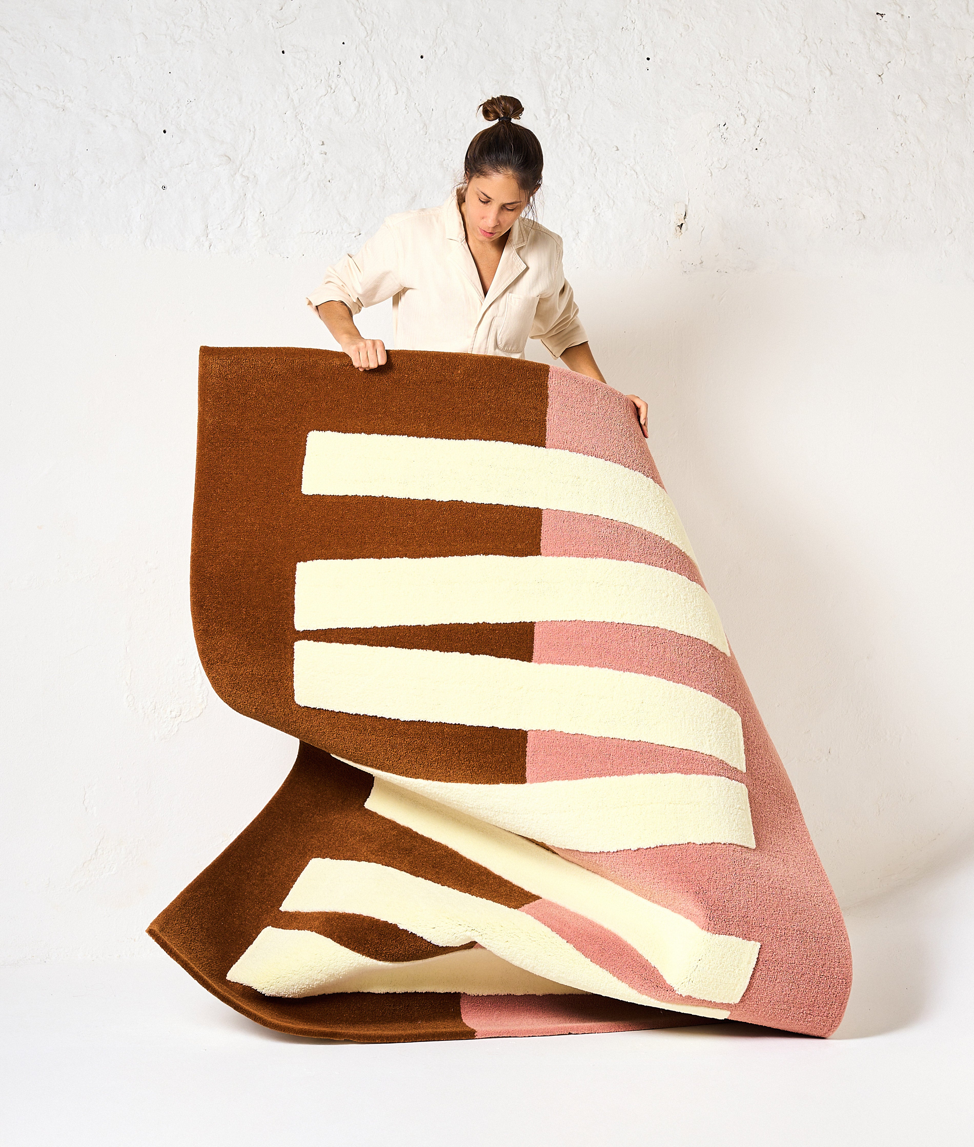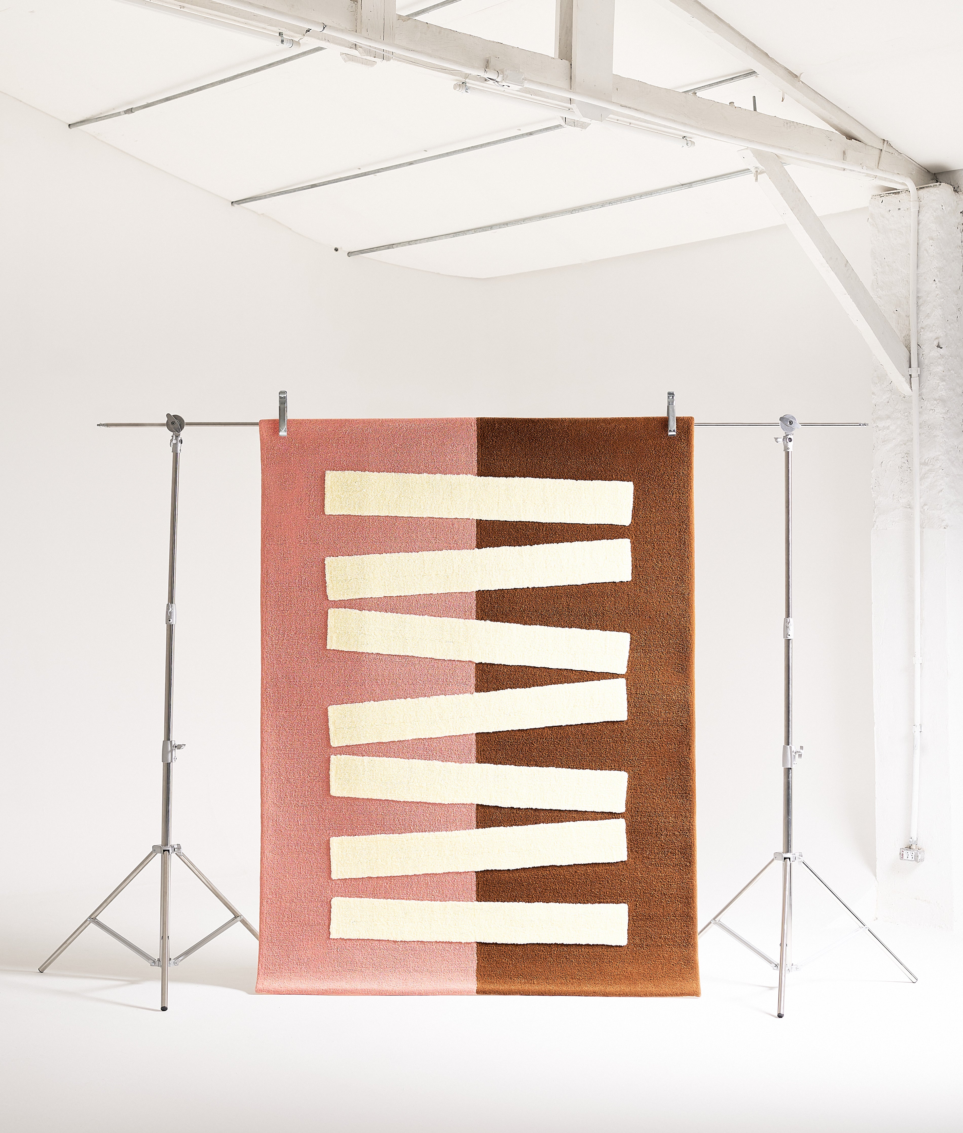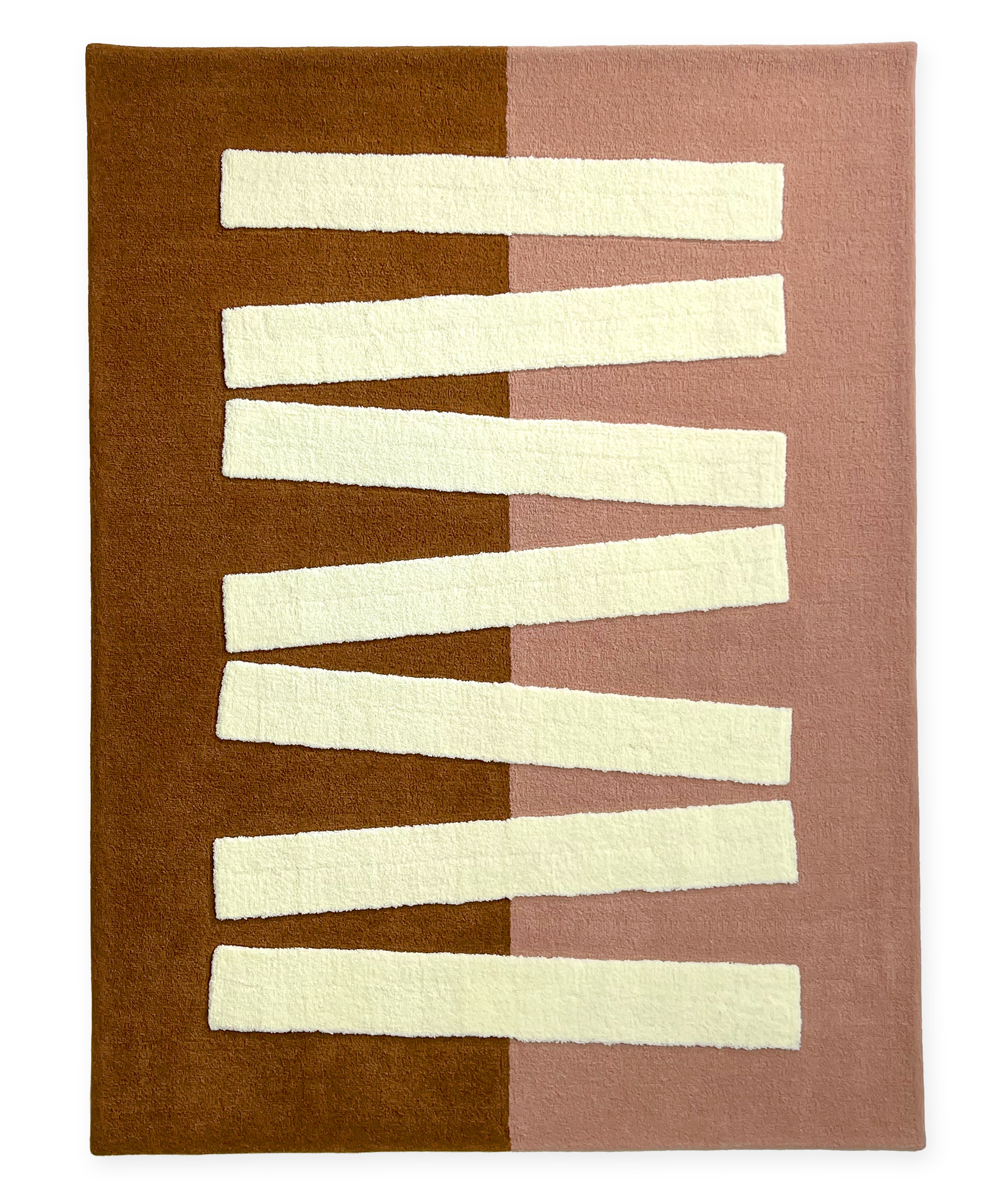 Tapete com desenho original modular criado a partir de colagens em papel e fabricação semi-artesanal em tufting. Textura super macia, com relevos localizados.